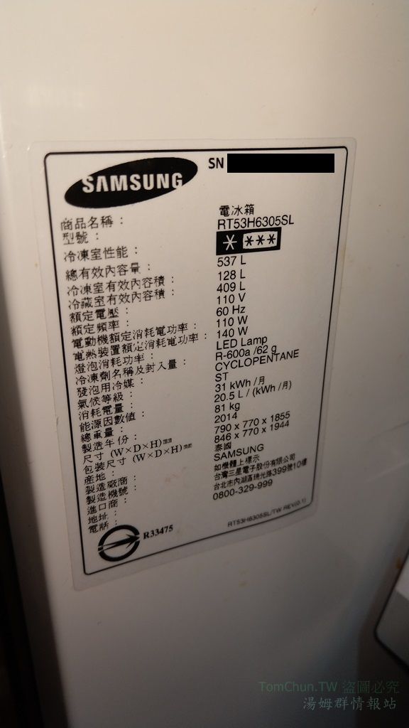 先確認自己冰箱的序號(最上方的SN)