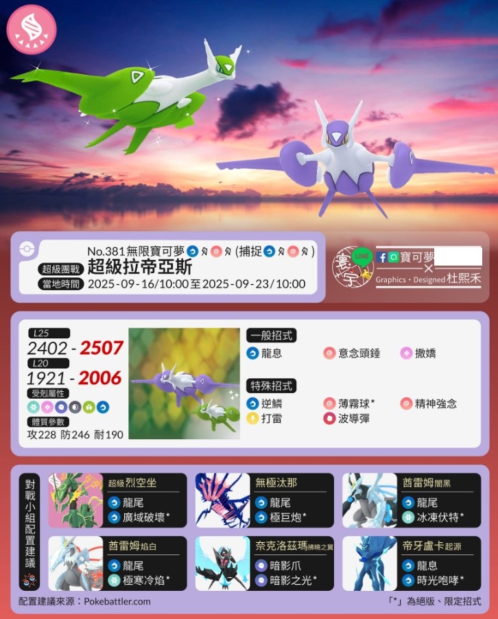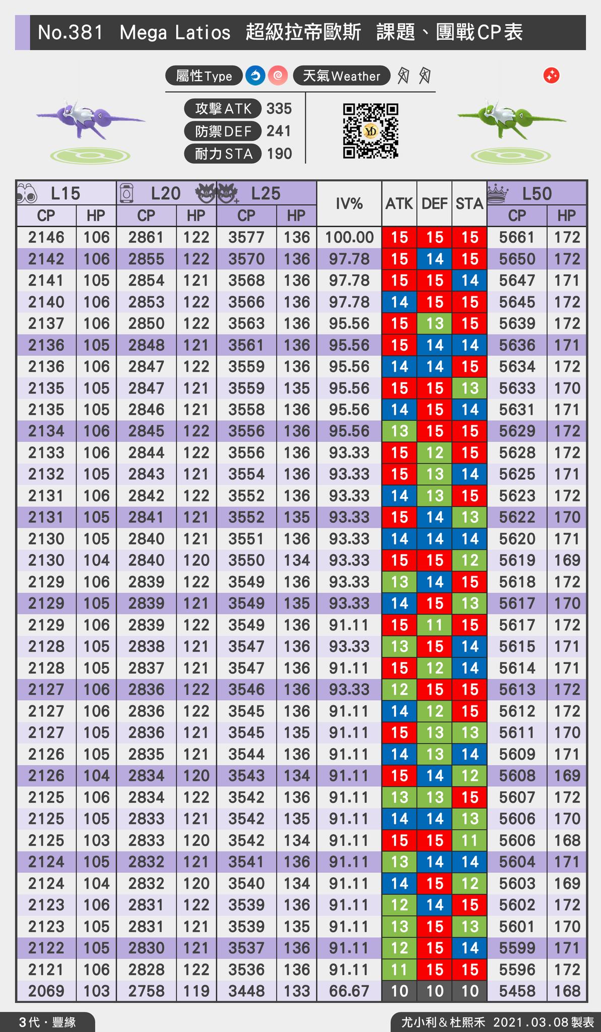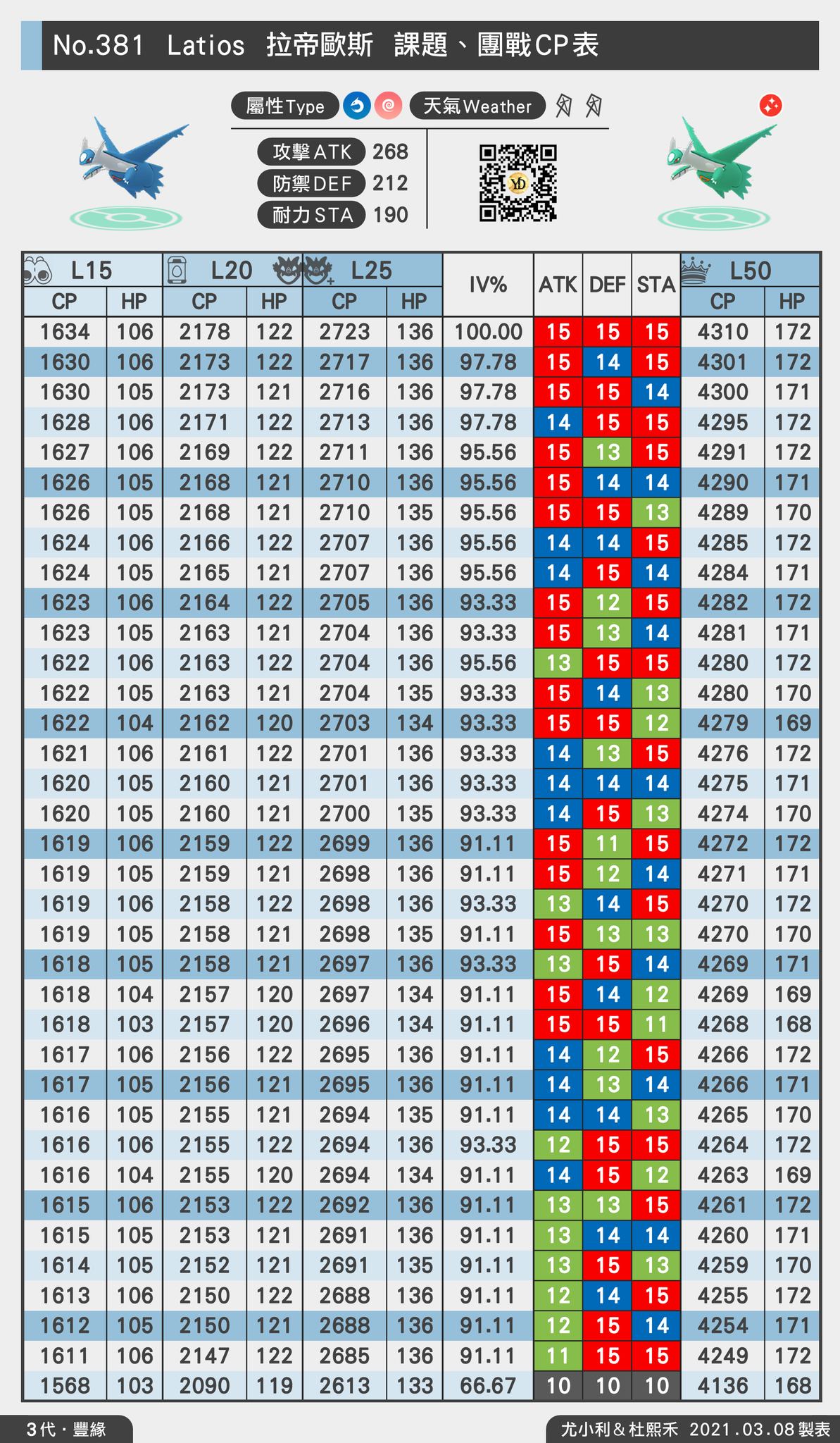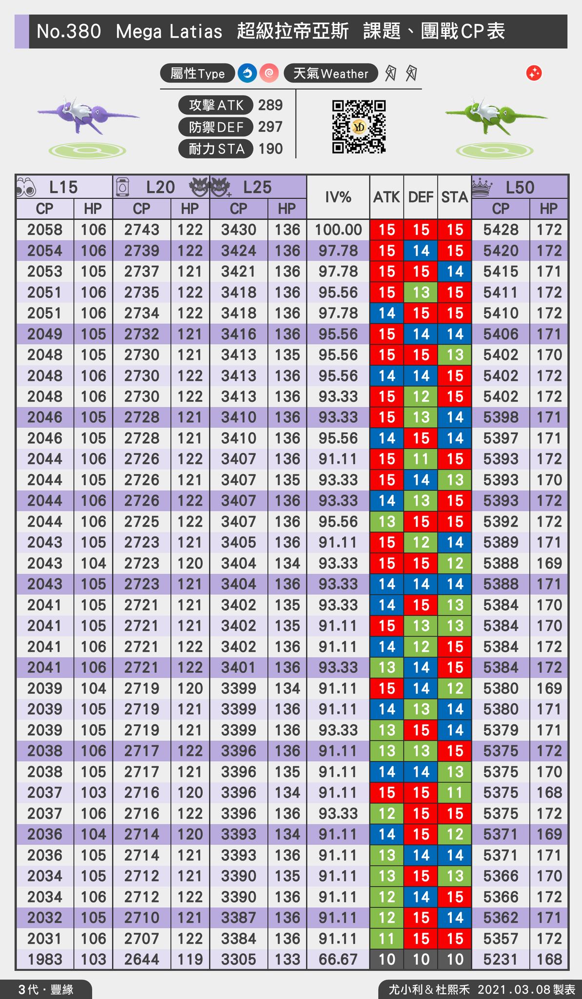 拉帝亞斯、拉帝歐斯、IV值表、CP、100%、ATK、40HP、LV、MEGA、超級進化 Pokemon GO 2025