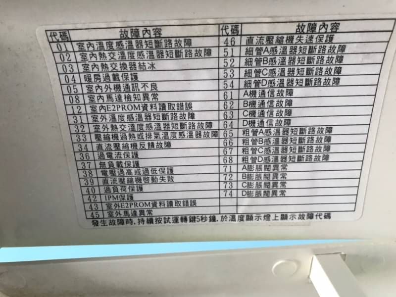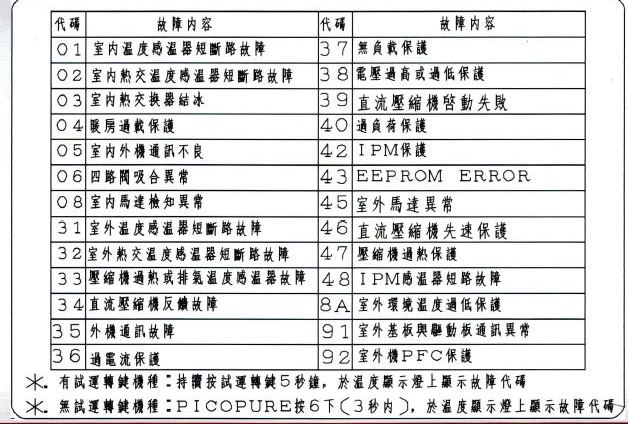 聲寶冷氣空調故障代碼內容說明、室內、壓縮機、馬達錯誤碼 發佈日期: 2018-07-232021-08-19 作者: tomchun ※本篇內文資訊參考如下※ - - ※更新文章日期: 2021-08-19 聲寶冷氣空調故障代碼說明 – 僅供參考,有疑問請聯繫原廠 聲寶冷氣故障代碼e2 – 微電腦檢出有不良訊號 如圖片 E0、E1、E3、E4、E5、EC F0、F1、F2、F3、F4、F5、 P0、P1、P2、P3、P4、P6 01~92