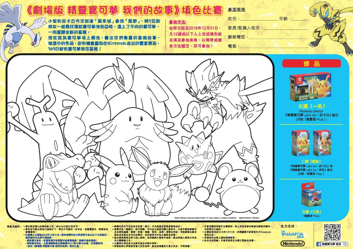 *填色紙可在各大戲院、黃埔天地、冒險樂園、CASABLANCA、蘇寧電器、百老匯分店、Pokémon Hub等地點免費領取。