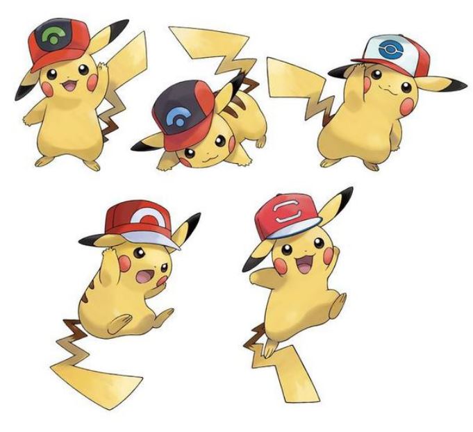 這次可供玩家領取的皮卡丘一共有5種!這些皮卡丘的頭上都戴著小智在過去的動畫系列中所戴過的帽子呢。