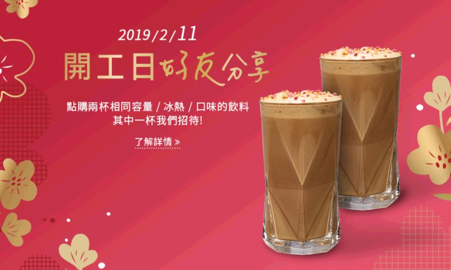2019星巴克開工日咖啡、優惠買一送一、好友分享