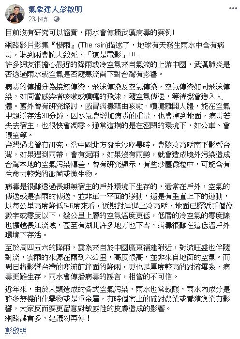 【假的】這幾天會下雨,雲層可能會挾帶細菌、病毒過來!