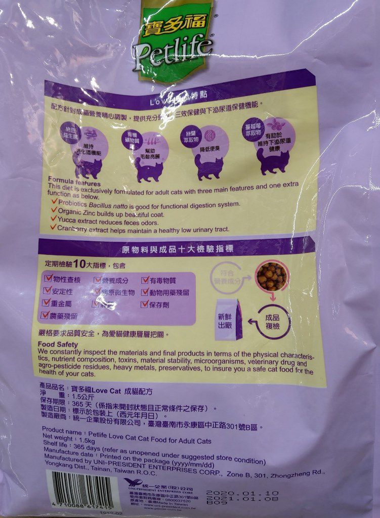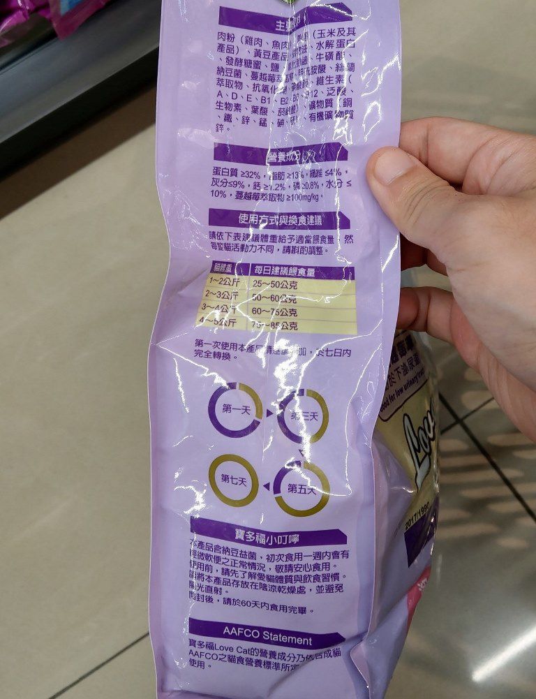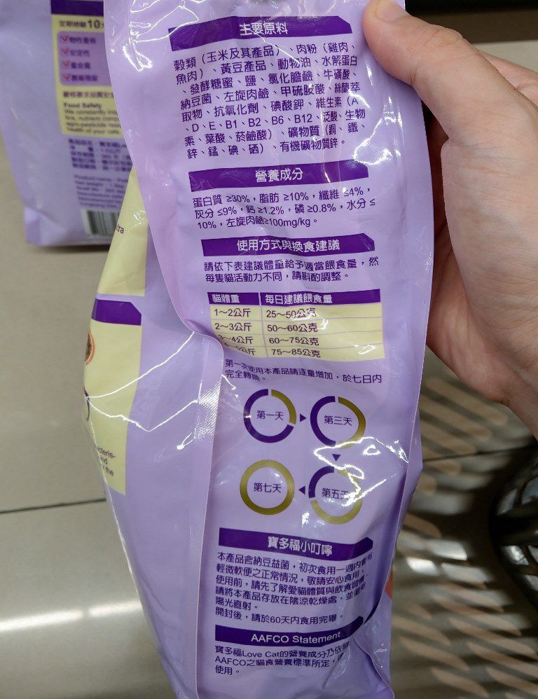 全聯賣的統一寶多福飼料、蔓越莓成貓、體重控制、LOVE CAT成份 發佈日期: 2020-08-092020-08-09 作者: tomchun ※本篇內文資訊參考如下※ - - ※更新文章日期: 2020-08-09 全聯賣的統一寶多福飼料、蔓越莓成貓、體重控制、LOVE CAT成份 單包189元 家裡一胖橘跟一虎斑 吃下來胃口跟大小便觀察下來都還不錯 有要看成份的可以看圖片,隨手拍拍