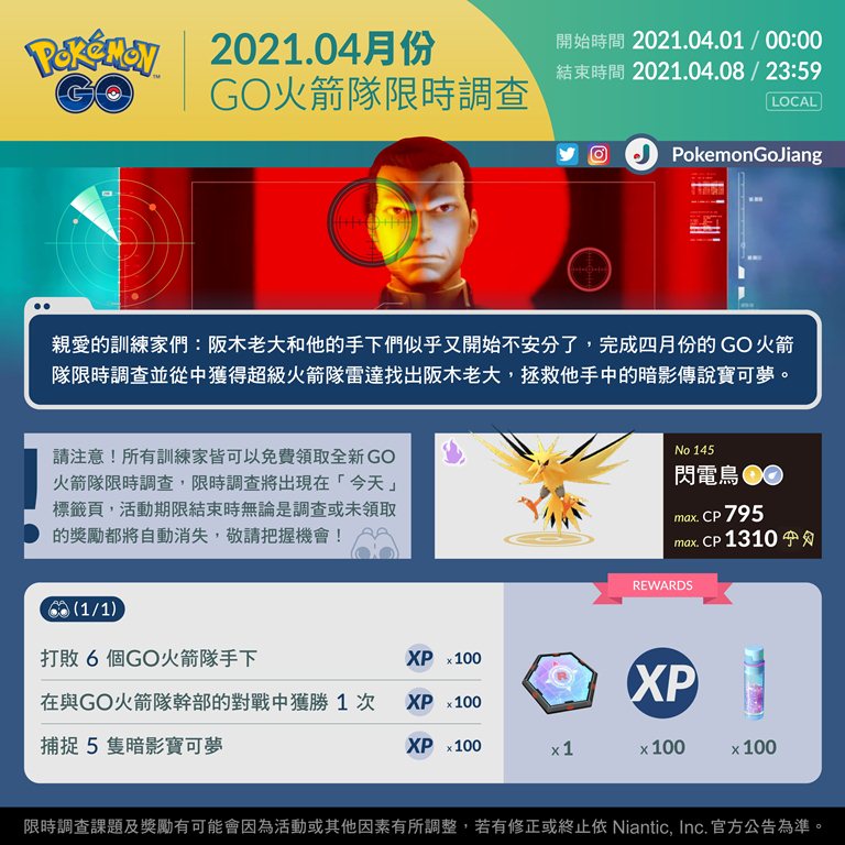 GO火箭兵團限時任務隨「愚人節」活動開始而出現。