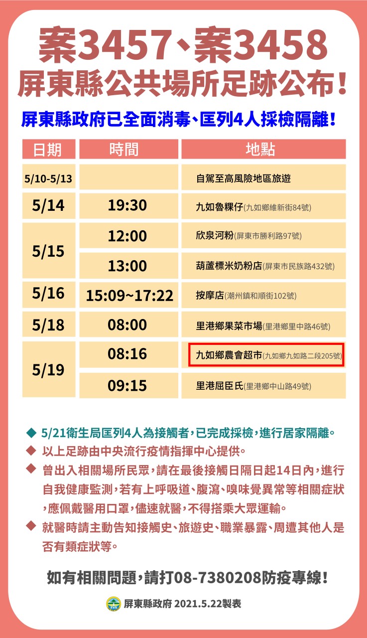 ⚠️【屏東5/22新增5例,公共活動史足跡公布!】