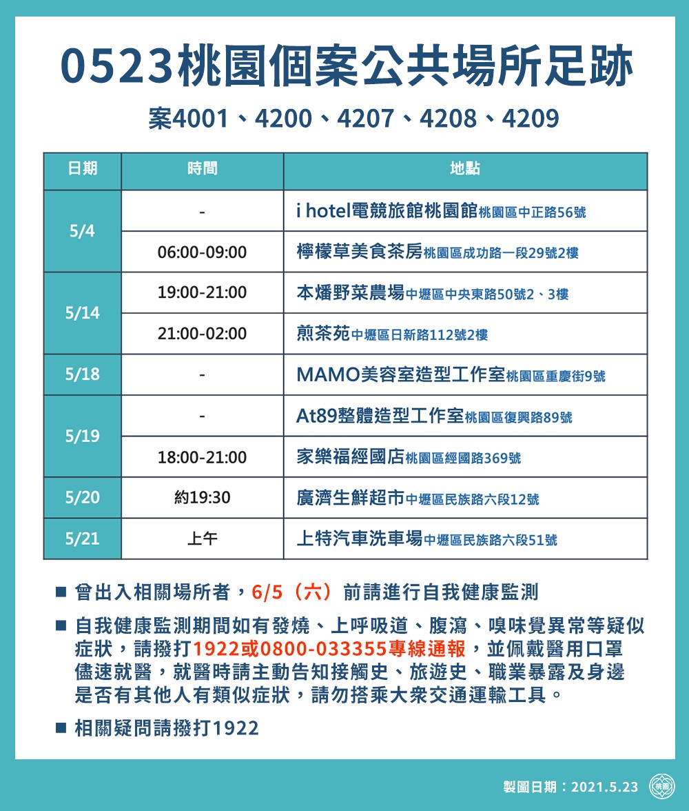 5/23 桃園確診案例公共場所活動足跡,請市民朋友注意‼