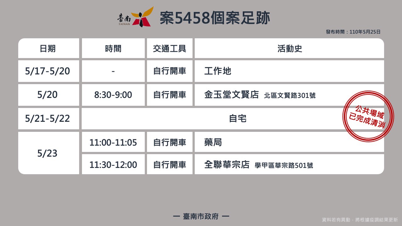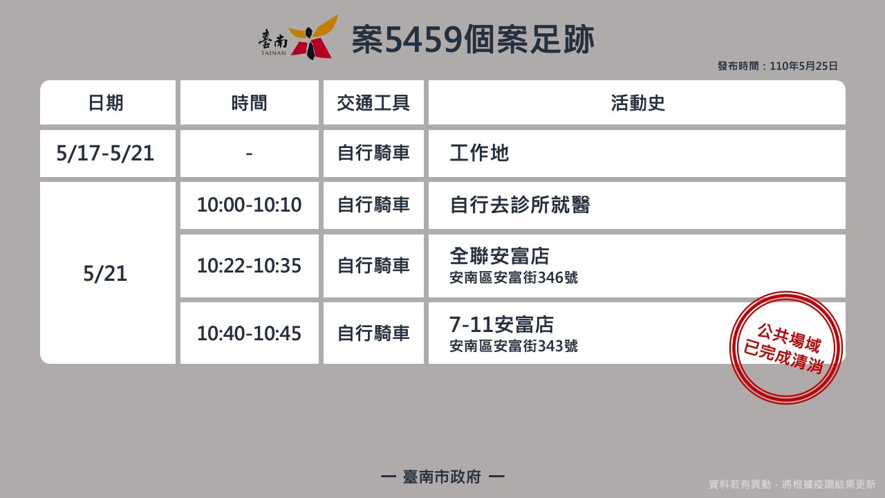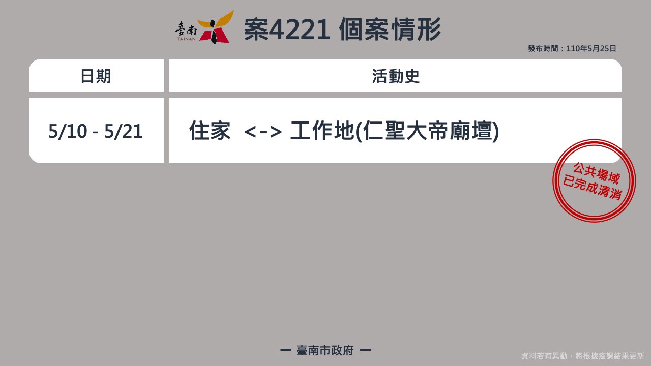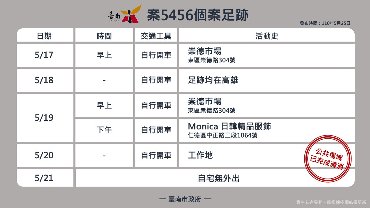 案4924足跡已清消│案4924彰化個案5/21曾到過台南玉井市場,昨(24)日已完成清消。