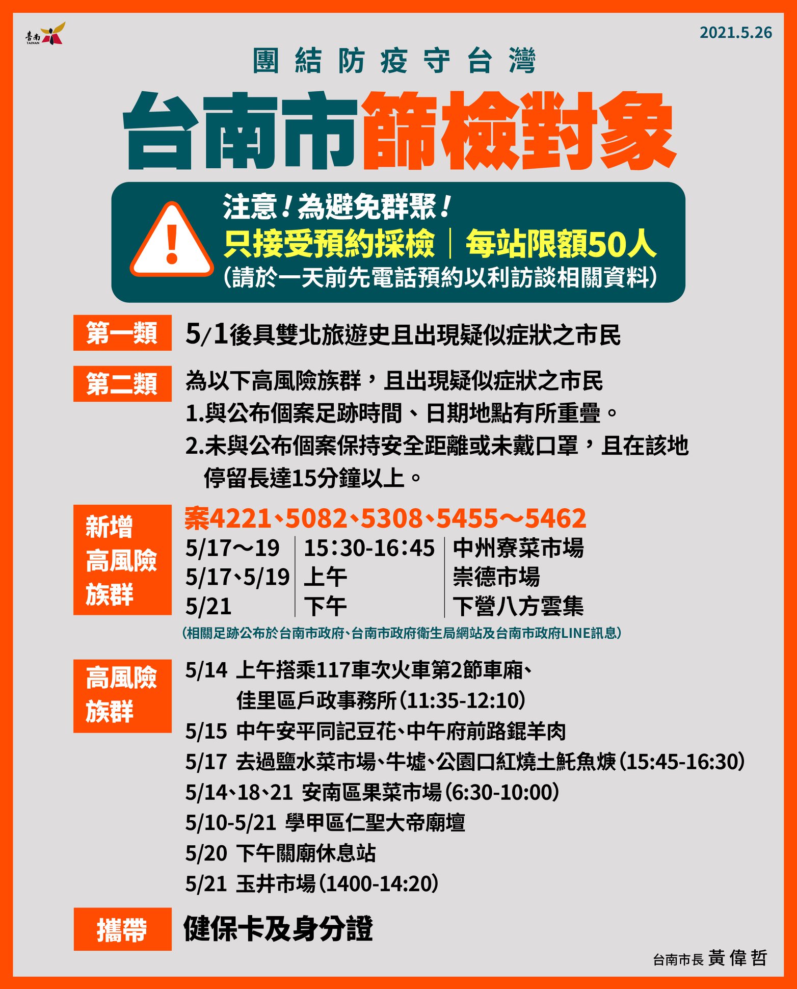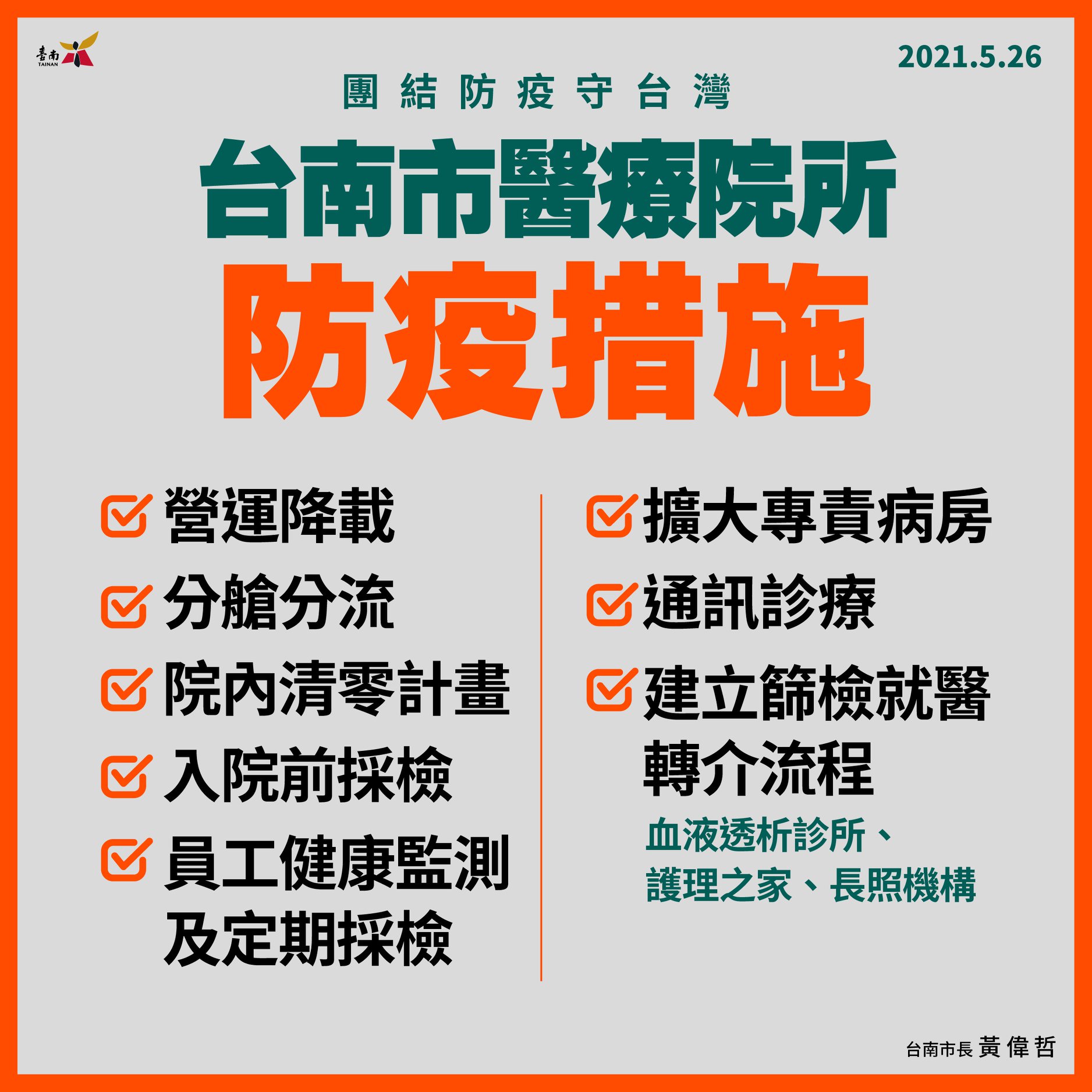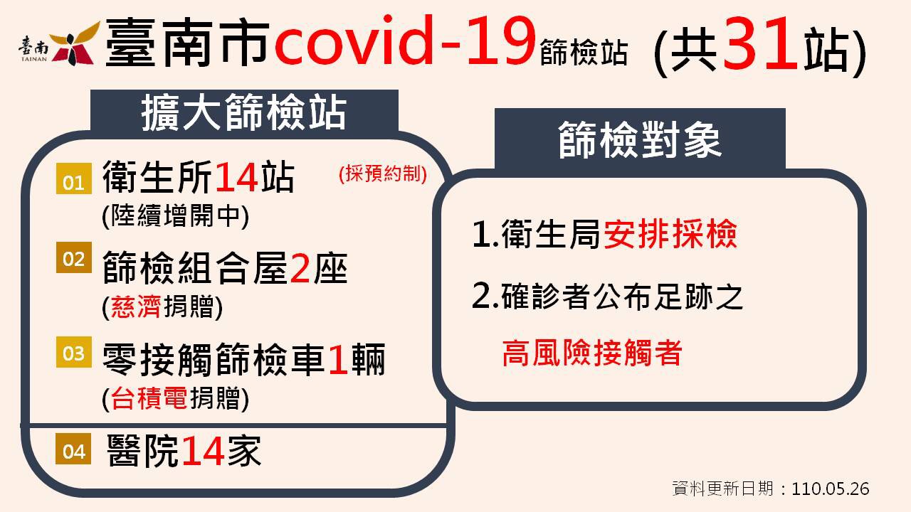 05/26台南市勞工紓困方案、醫院防疫措施、足跡篩檢對象