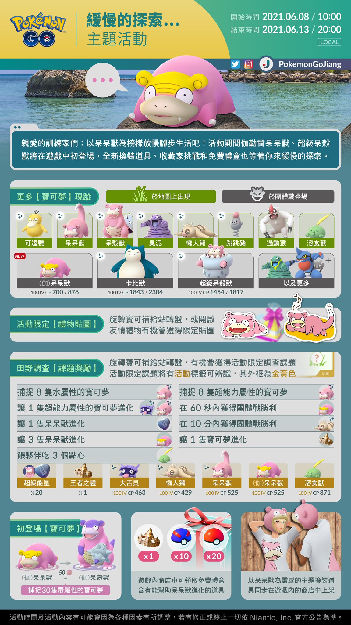 06/08更新田野任務活動表、呆呆獸收藏家挑戰Pokemon GO