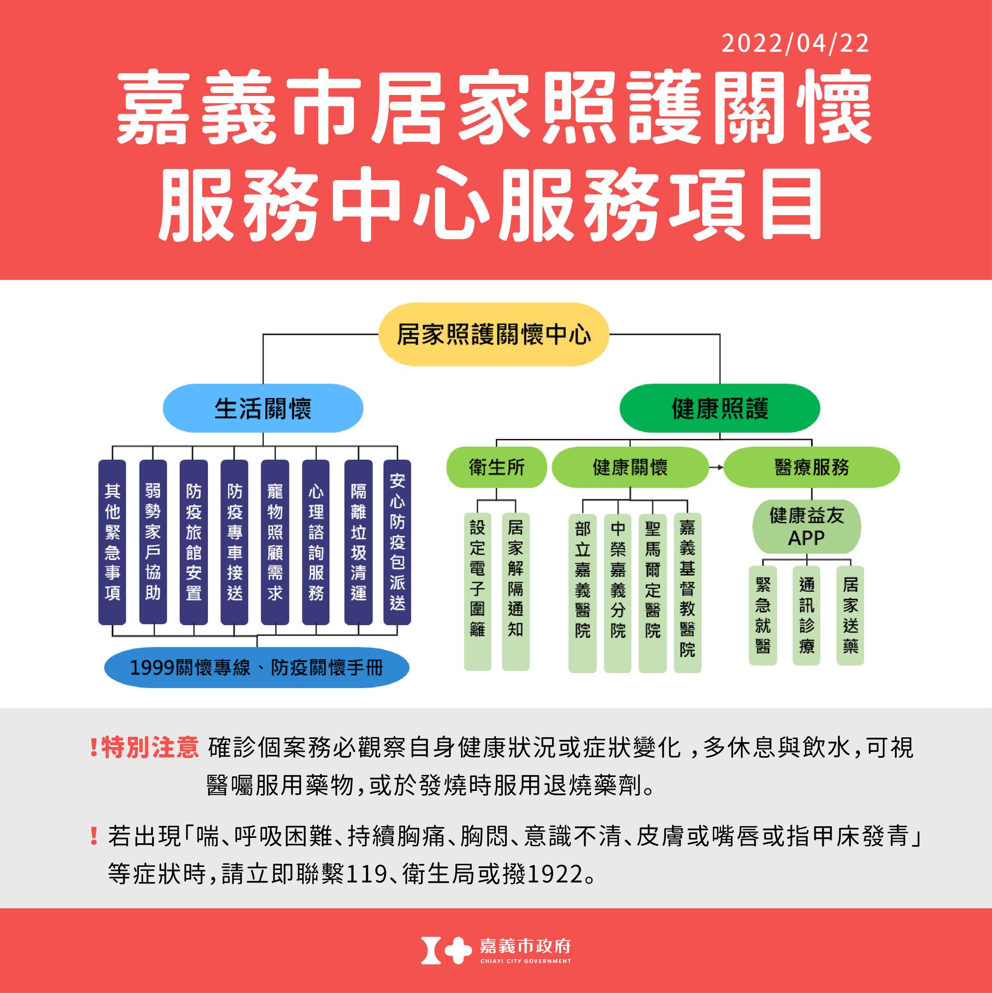 #嘉義市居家照護關懷中心 結合 #生活關懷 及 #健康照護 服務項目,除了持續對居家檢疫及居家隔離對象追蹤管理外,更重要的是對確診者居家健康照護。
