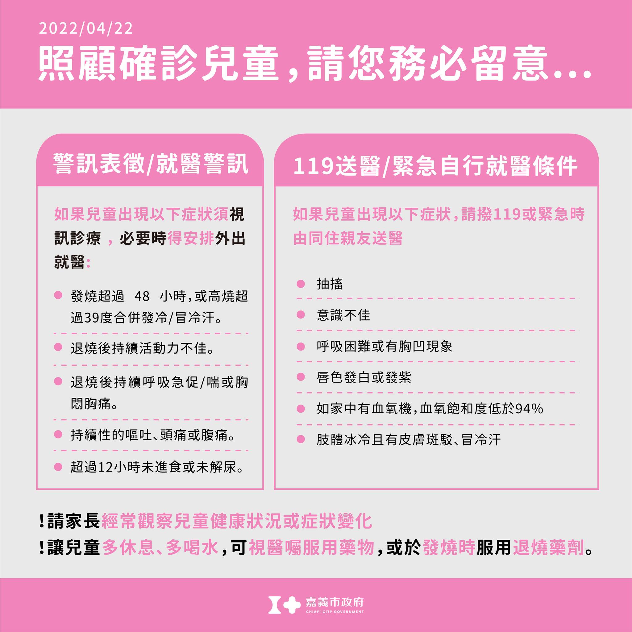 嘉義市啟動COVID-19居家照護關懷中心、接觸確診者後流程、兒童確診、留意症狀注意事項