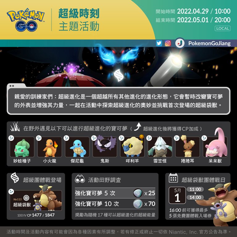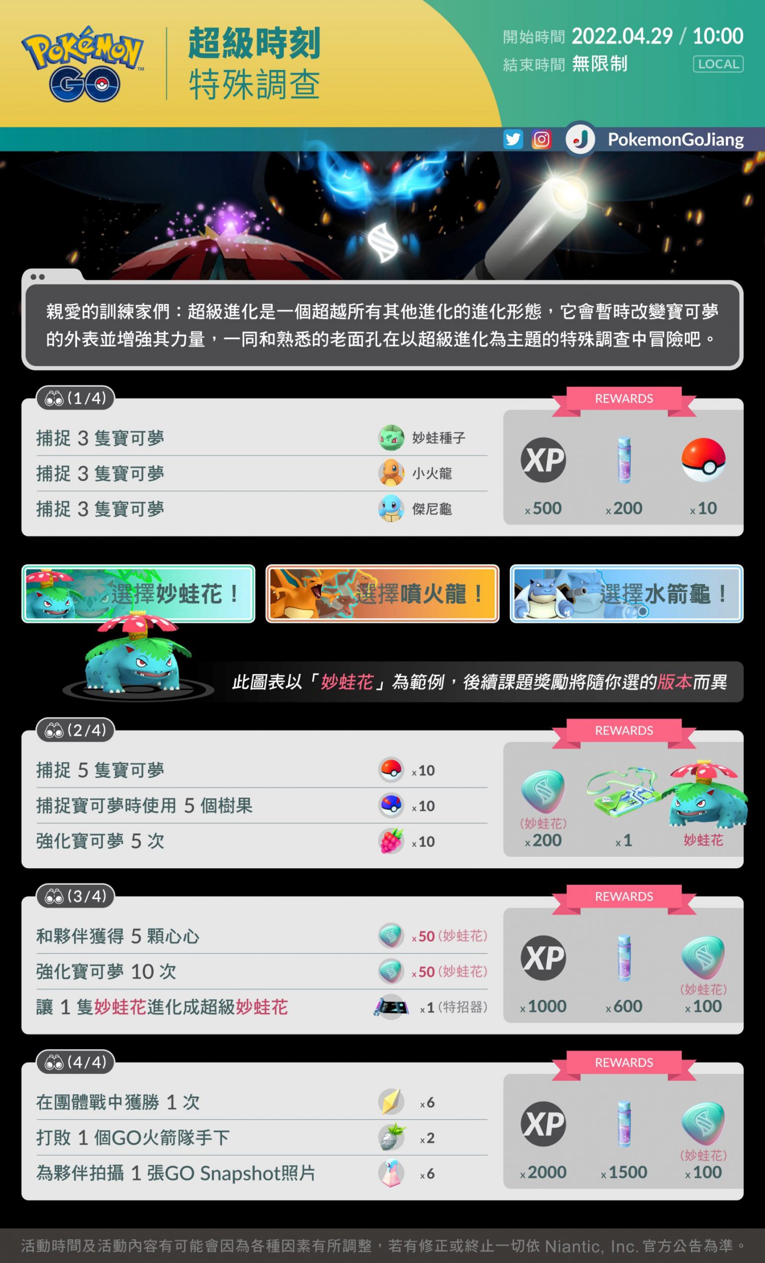 超級時刻任務調查(4關卡) Pokemon GO 一起來探索超級進化的奧妙吧!