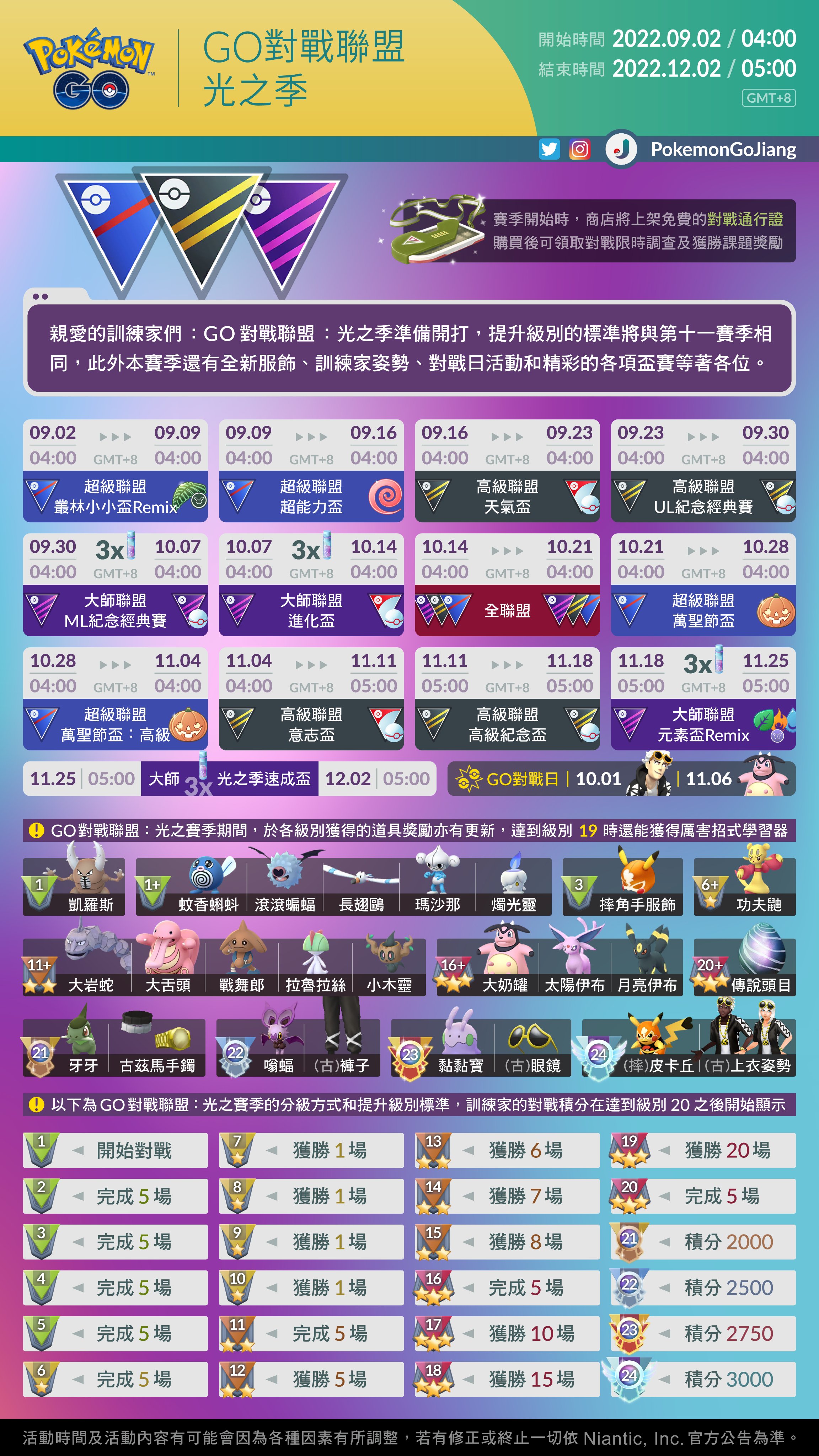 光之季GO對戰聯盟賽季時間表、級別獎勵Pokemon GO