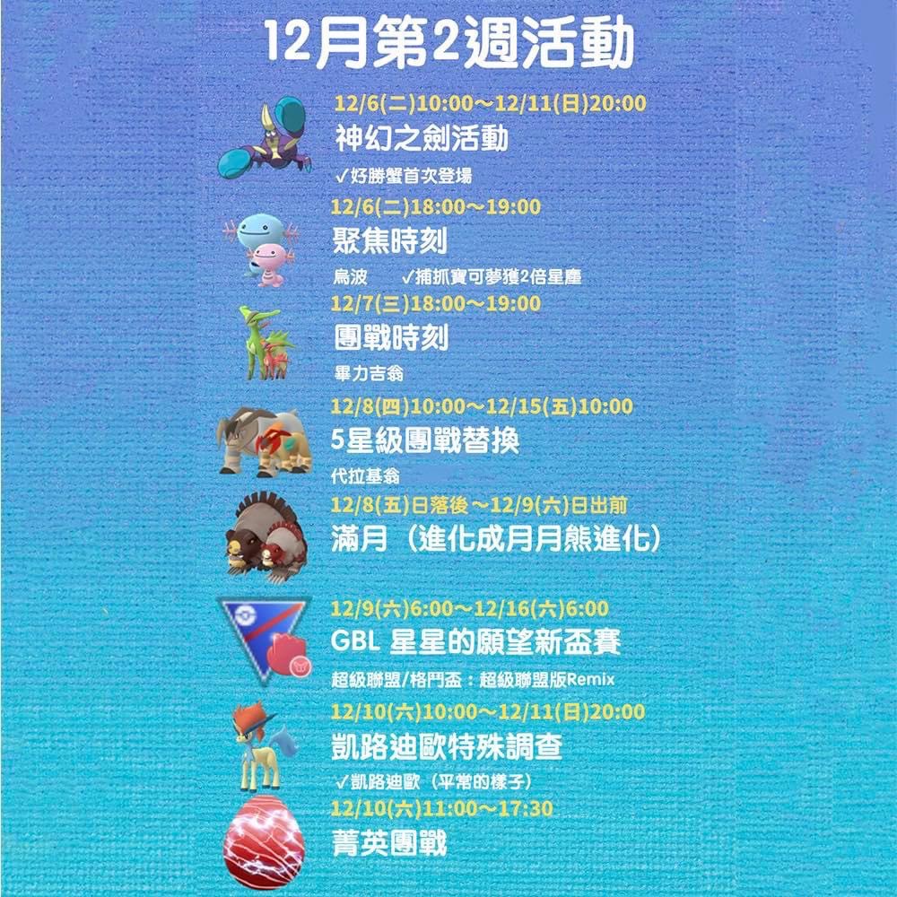12/06~12/10本週活動提醒Pokemon GO 2022