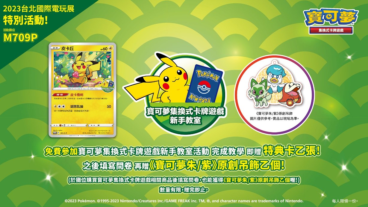 注意事項:※請依照現場工作人員指引安排,謝謝配合。※若遇到現場人潮眾多時,還請您耐心等候。※特典卡與《寶可夢朱/紫》原創吊飾數量有限,贈完即止。#寶可夢集換式卡牌遊戲#寶可夢集換式卡牌遊戲台灣#寶可夢集換式卡牌遊戲新手教室#台北國際電玩展