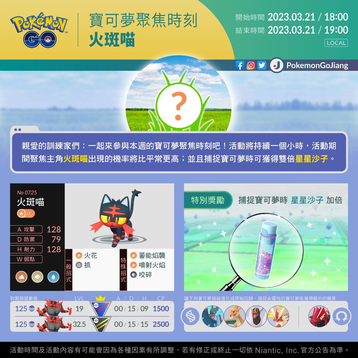 03/21聚焦時刻:火斑喵IVCP表Pokemon GO 2023