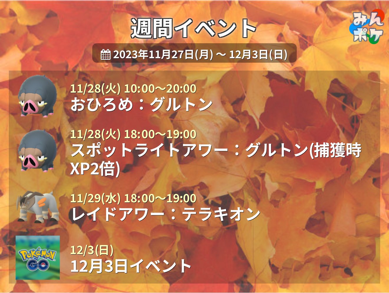 11/28~12/03 本週Pokemon GO活動提醒2023