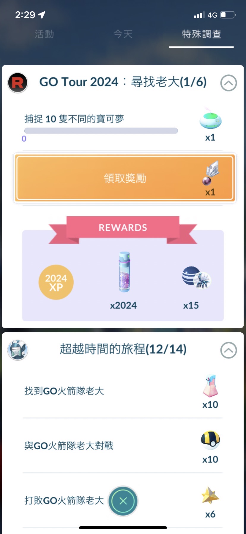 GO Tour 2024 : 尋找老大任務Pokemon GO特殊調查任務 發佈日期: 2024-02-172024-02-17 作者: tomchun ※本篇內文資訊參考如下※ - - ※更新文章日期: 2024-02-17 GO Tour 2024 : 尋找老大任務Pokemon GO – 更新中 第一關卡 捕捉十隻不同寶可夢 使用薰香 – – 第二關卡 旋轉寶可夢補給站或道館 – –