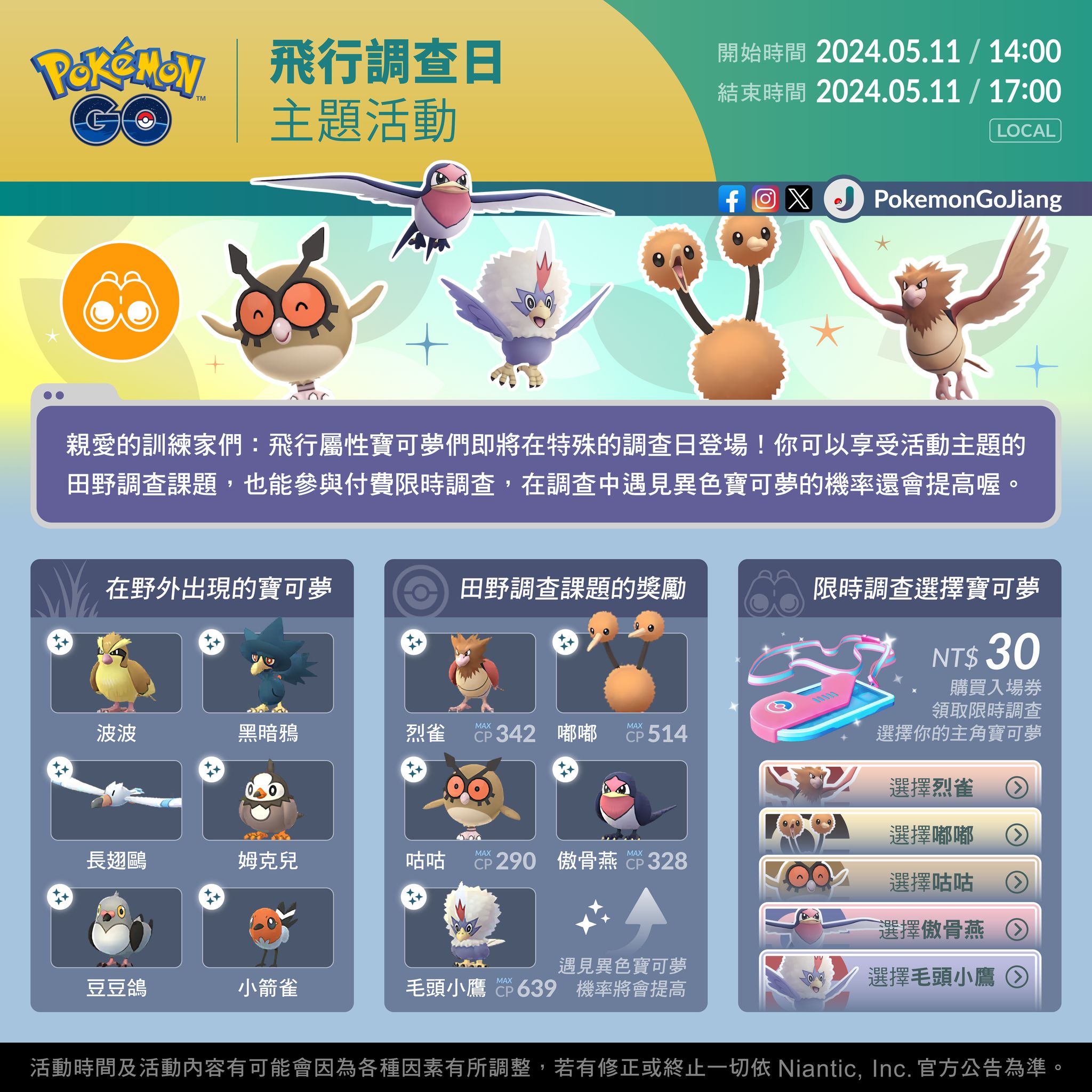 以飛行屬性寶可夢為主角的限時調查即將登場🕊️