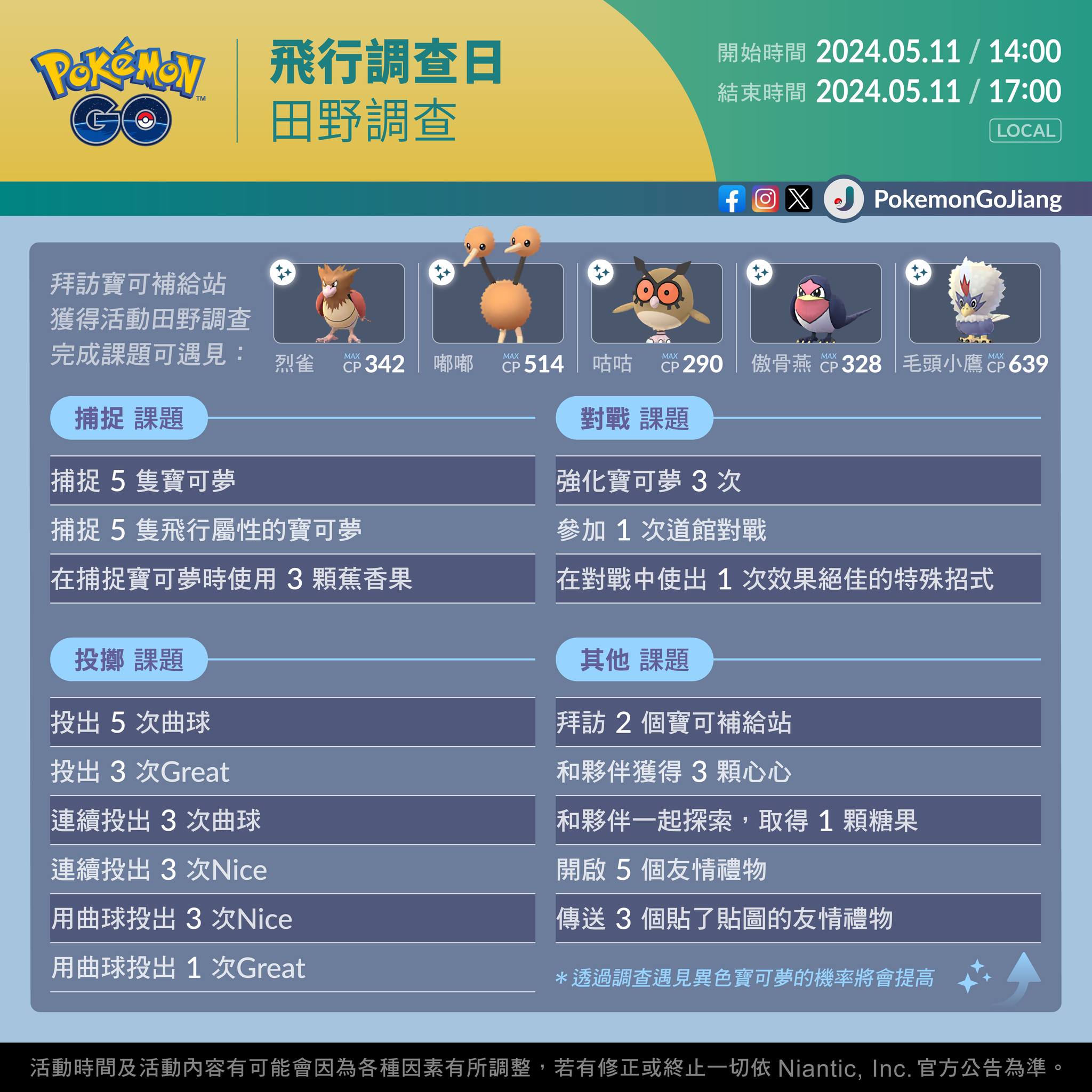 飛行調查日特殊調查任務Pokemon GO 2024