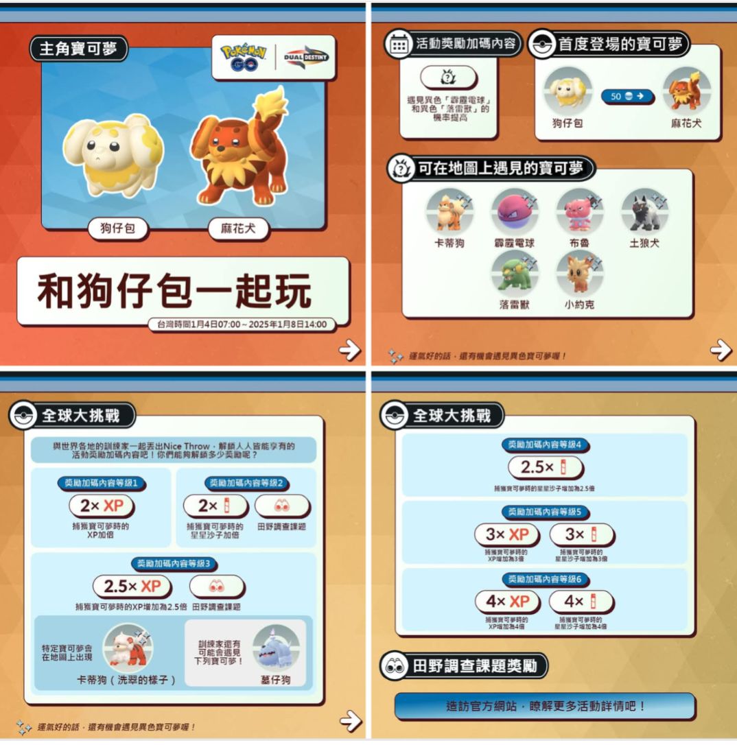 01/04 全球大挑戰狗仔包&麻花犬活動將登場Pokemon GO 2025