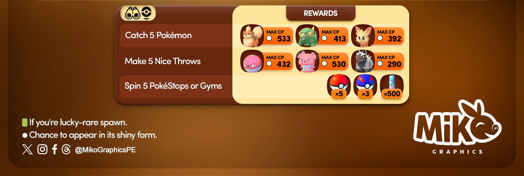 – Rewards: Hisuian Growlithe, Electrike, or Fidough