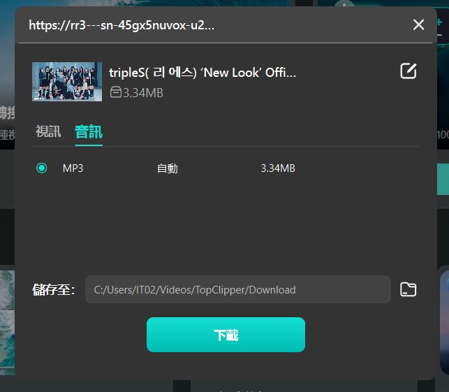 下載會跳出想要的畫質及是否要直接轉成MP3