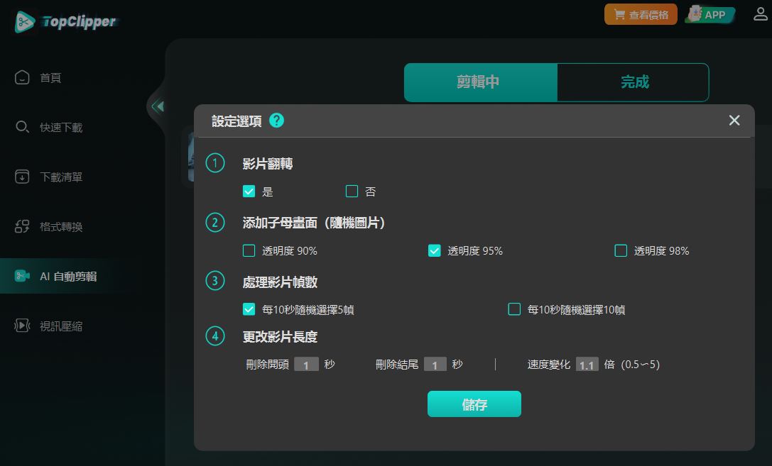 可進行影片翻轉 子母畫面 透明度 調整幀數 影片長度 影片速度 等功能