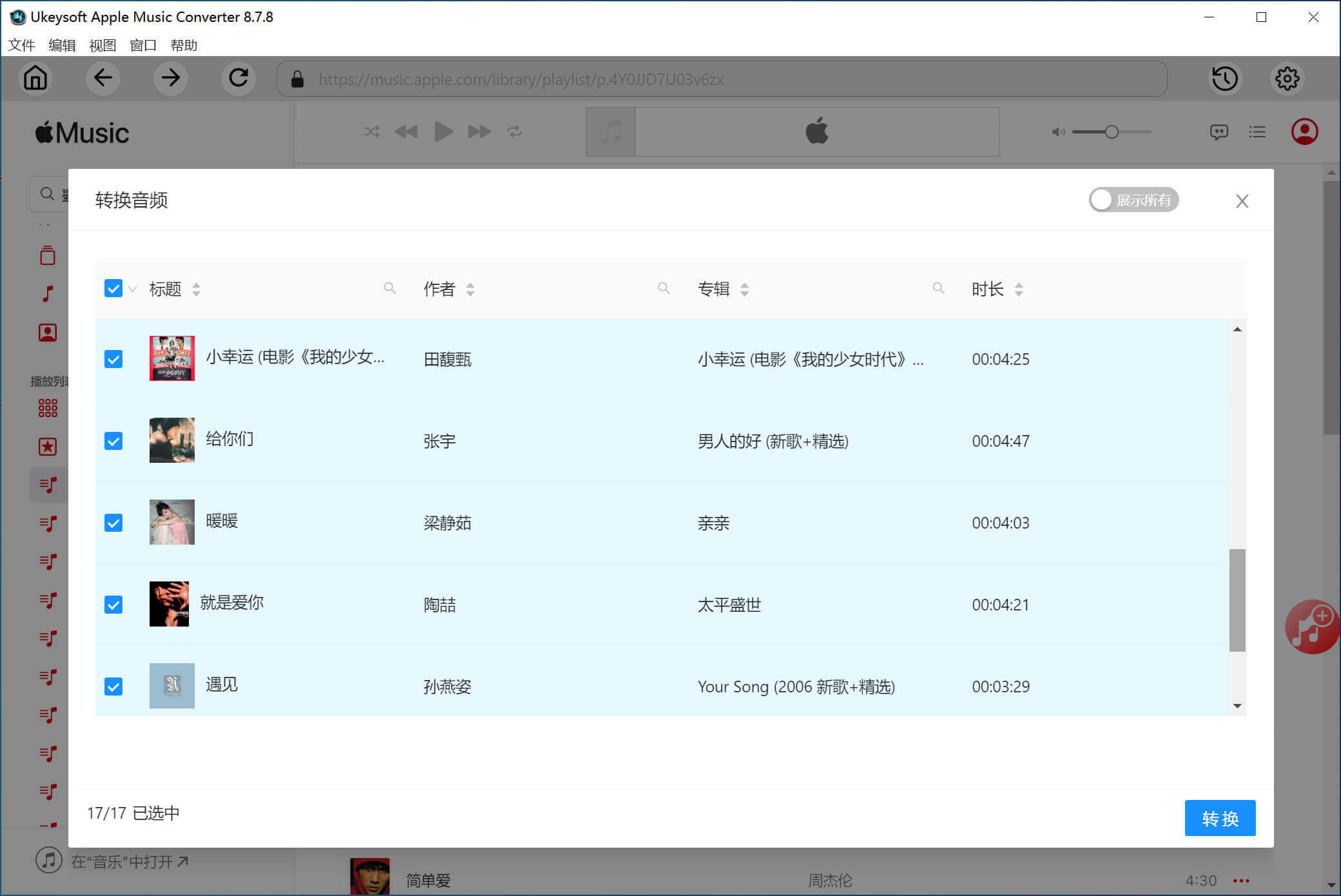 支援一次批量轉換Apple Music歌曲/播放清單/專輯