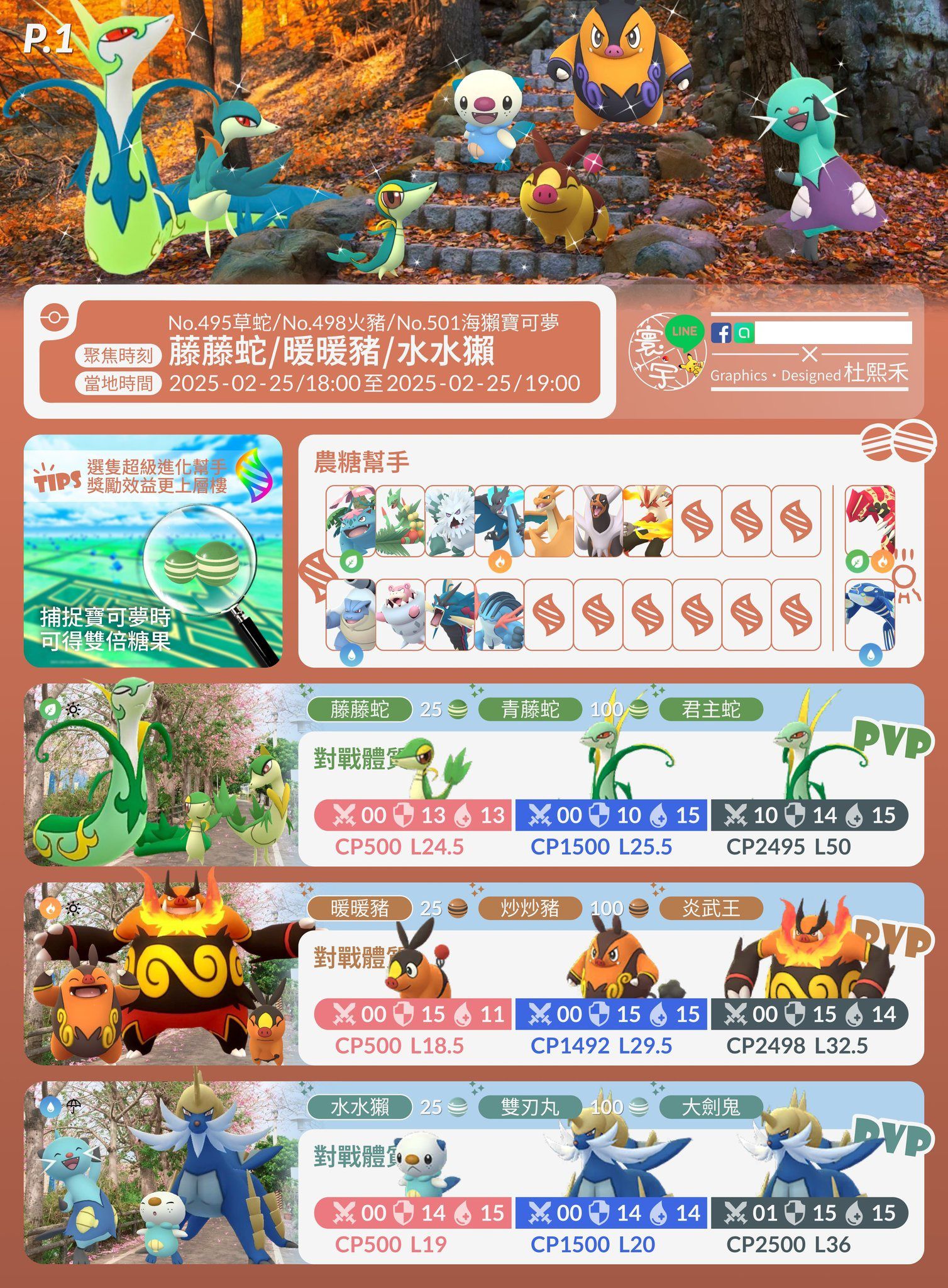 野生寶可夢:藤藤蛇、暖暖豬、水水獺、青藤蛇、炒炒豬、雙刃丸