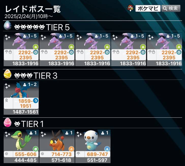 頭目表、一星、二星、三星、四星、五星、MEGA頭目、各星頭目更新、暗影團體戰 (假日限定)、最新孵蛋表、暗影頭目寶可夢