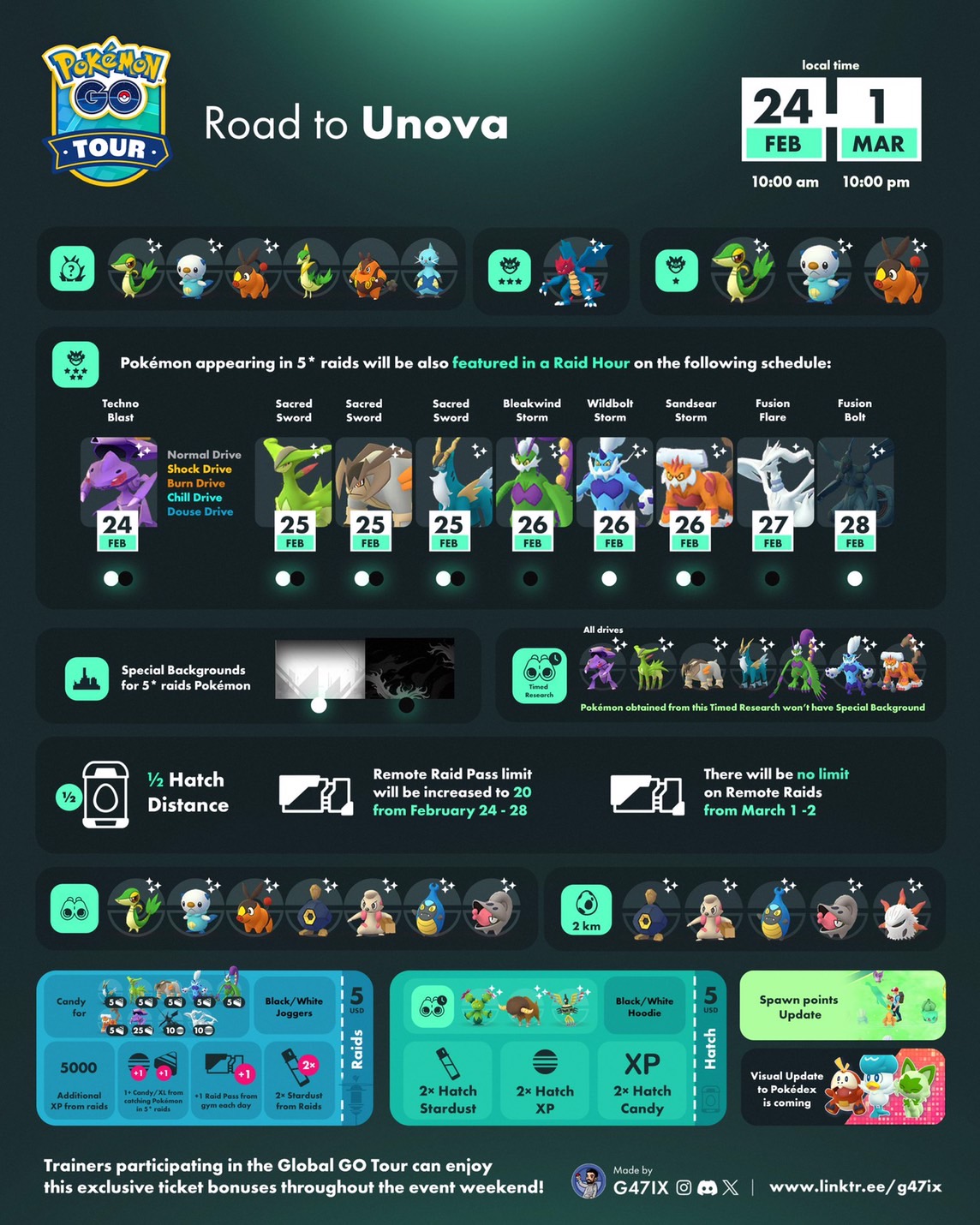 訓練家只要在「前往合眾之路」活動期間參與傳說團體戰,就有機會在成功捕捉寶可夢後,獲得全新的特別背卡。特別背卡將會出現在寶可夢資訊頁面,上面會顯示捕捉到牠的時間,並以此紀念即將登場的「Pokémon GO Tour」之旅!