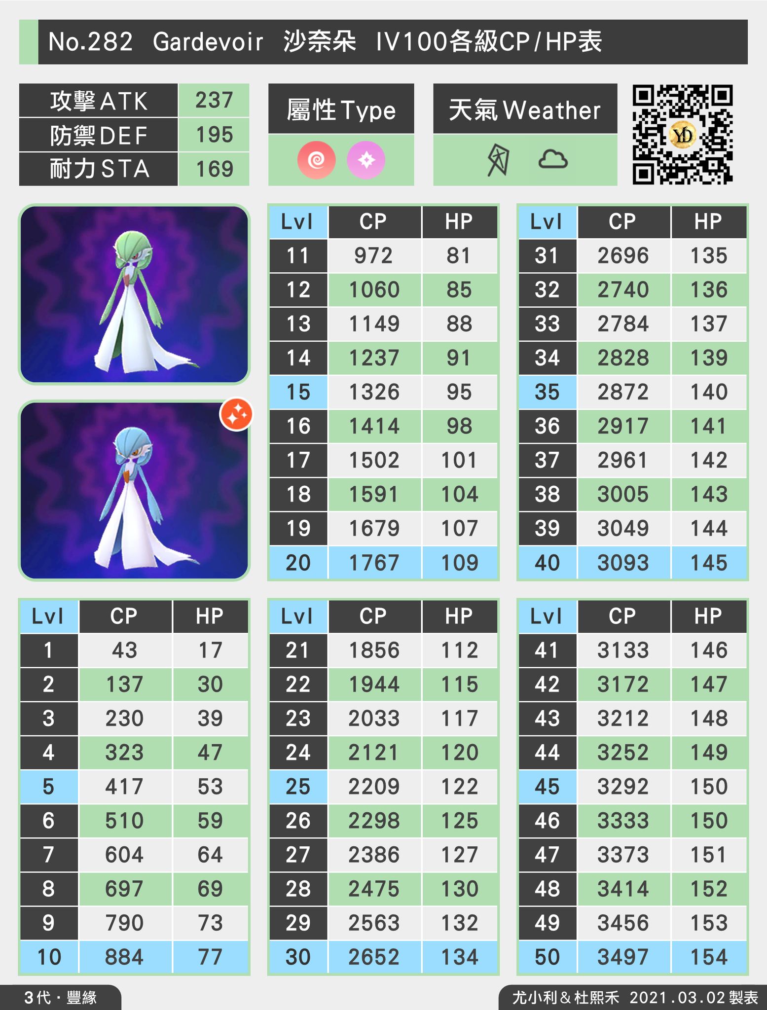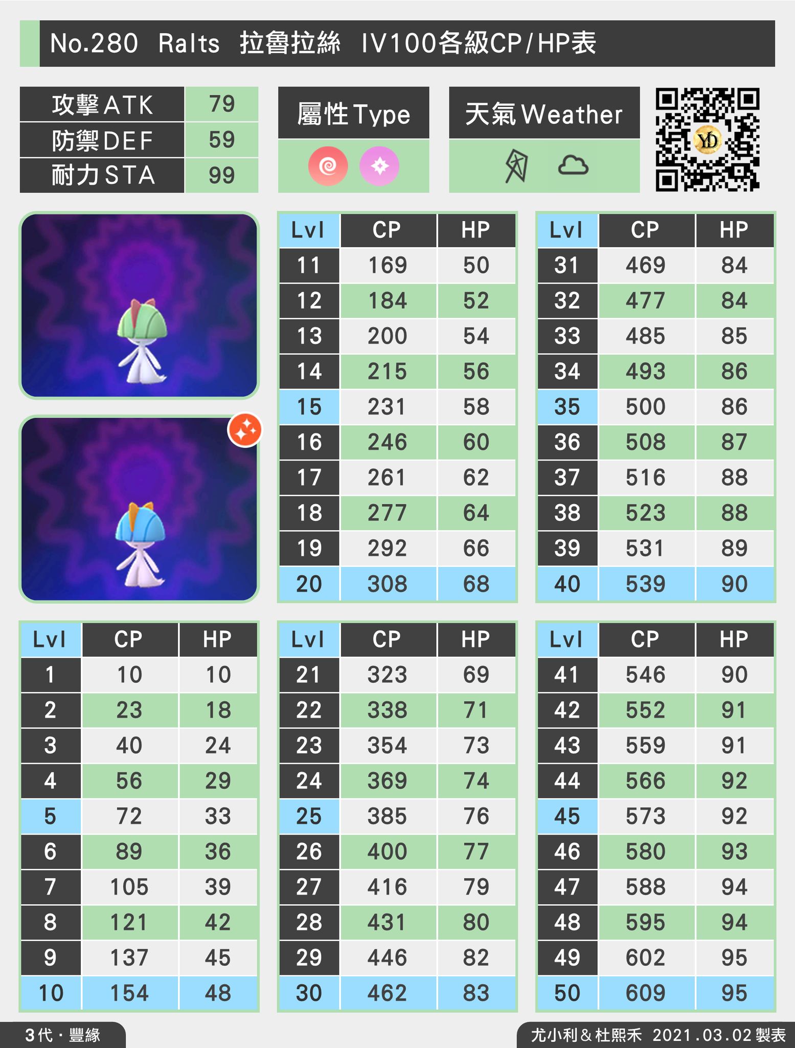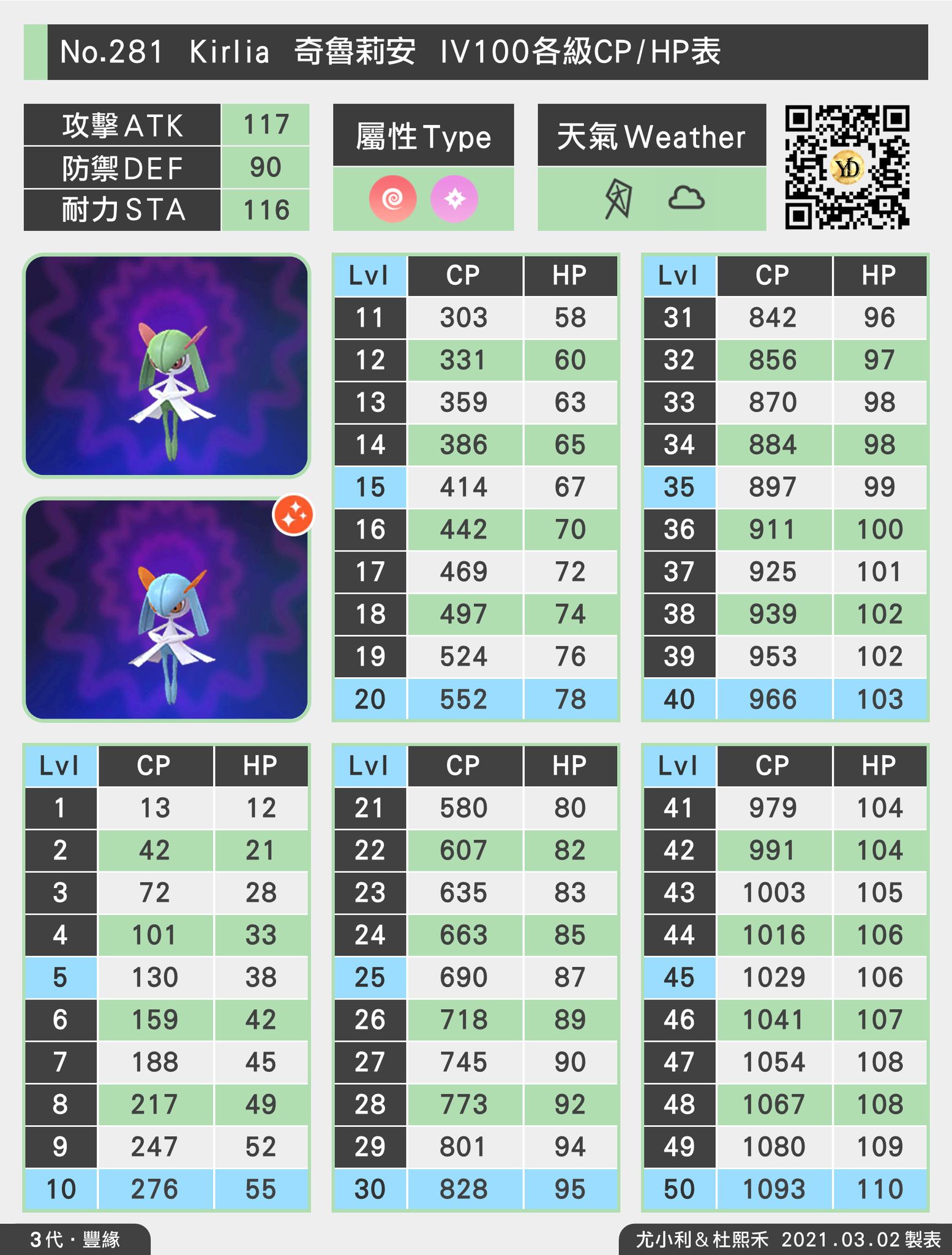 拉魯拉絲、奇魯莉安、沙奈朵、艾路雷朵 100 IVCP表下載 Pokemon GO 2025