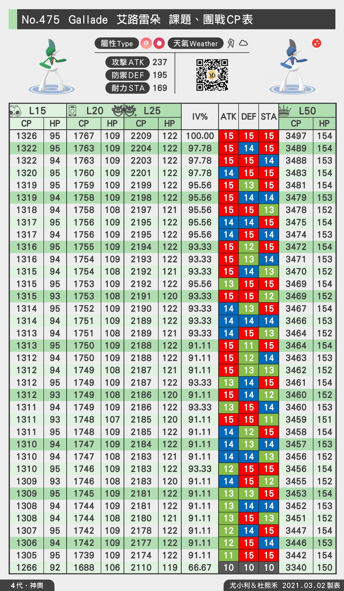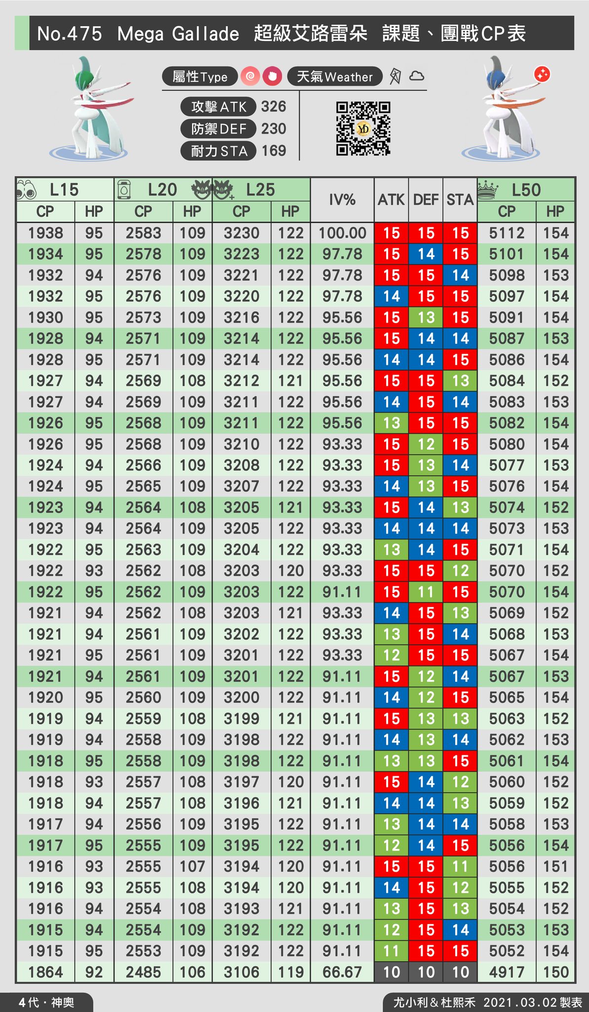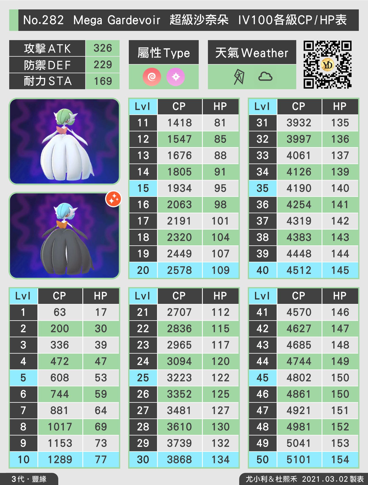 拉魯拉絲、奇魯莉安、沙奈朵、艾路雷朵 100 IVCP表下載 Pokemon GO 2025