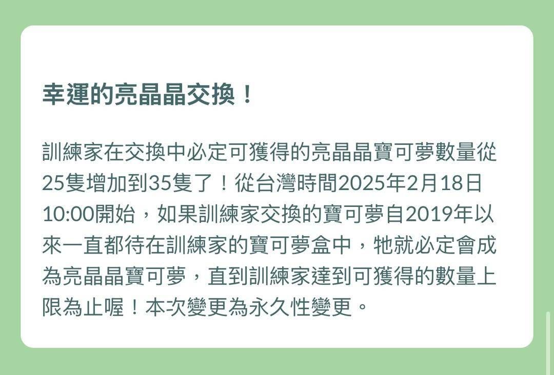 02/05 幸運的亮晶晶交換寶可夢資訊更新!必定亮晶晶寶可夢! Pokemon GO 2025