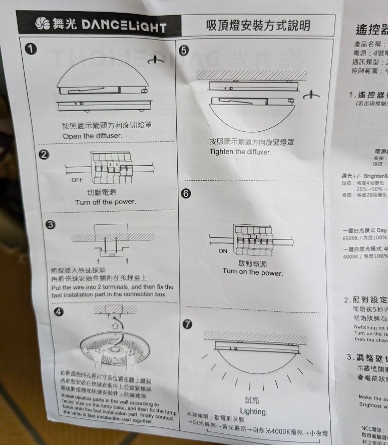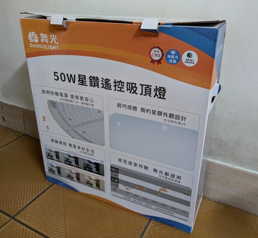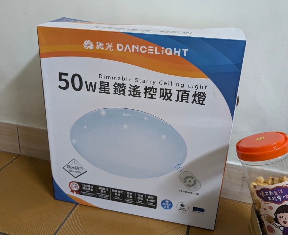 嘉義電燈安裝、舞光50W星鑽遙控吸頂燈開箱客廳安裝