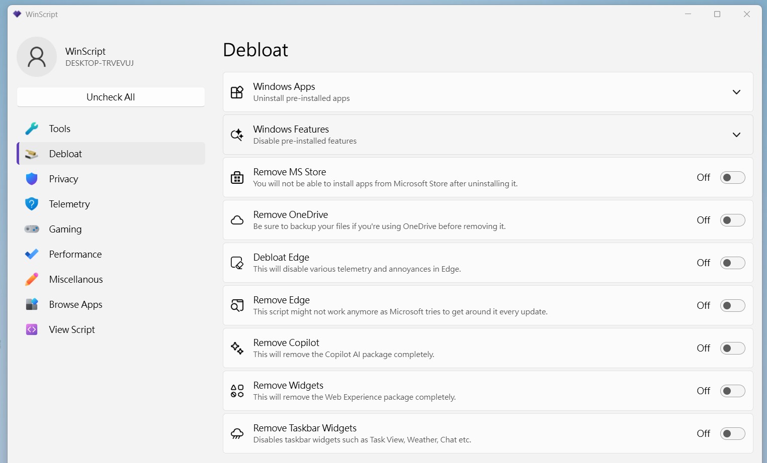 【系統調校工具 ✅】被 Neowin 選為十大 Windows 系統調校工具之一,WinScript 已成為近期最受歡迎的 Windows 10 / 11 最佳化工具。這款軟件不僅介面簡潔易用、功能強大,而且是 Open Source 開源軟件,完全免費。
