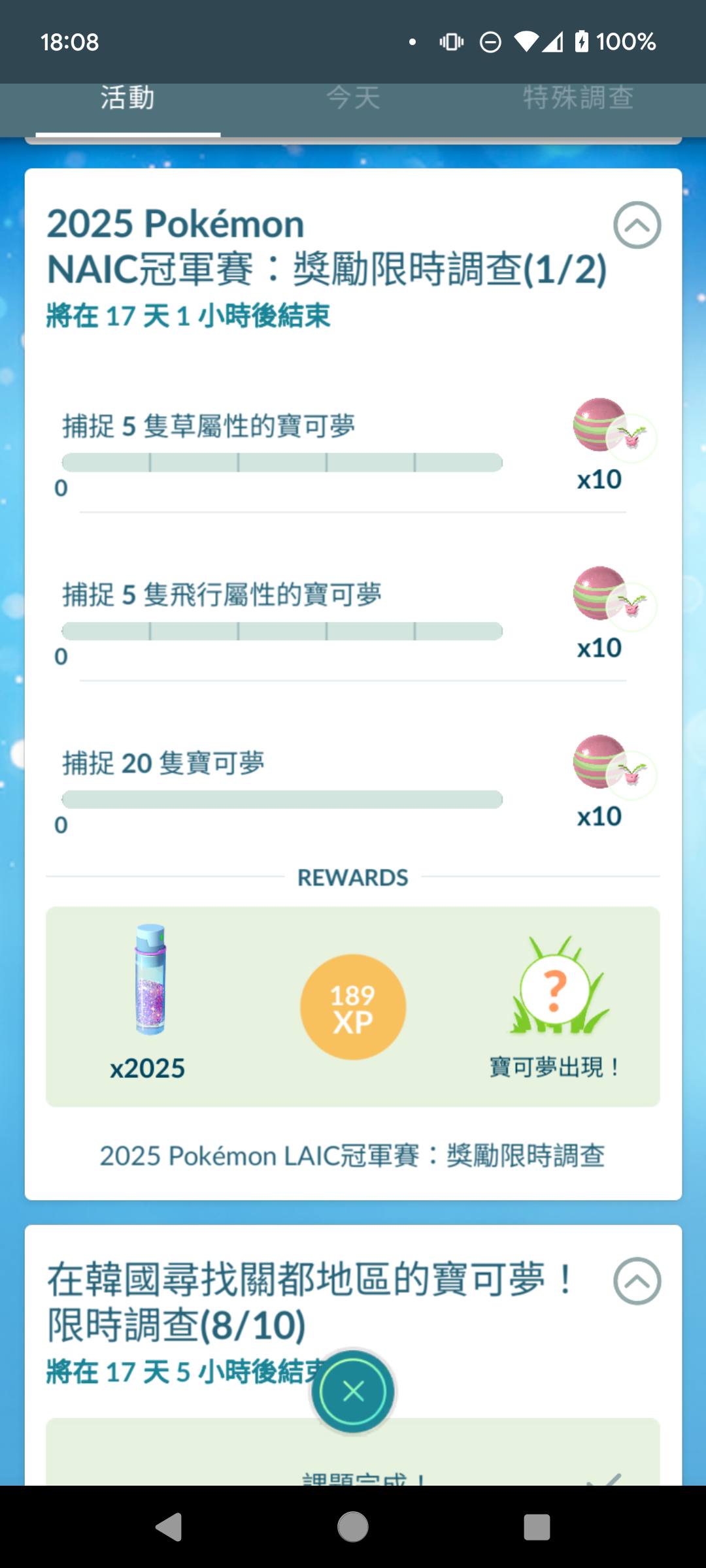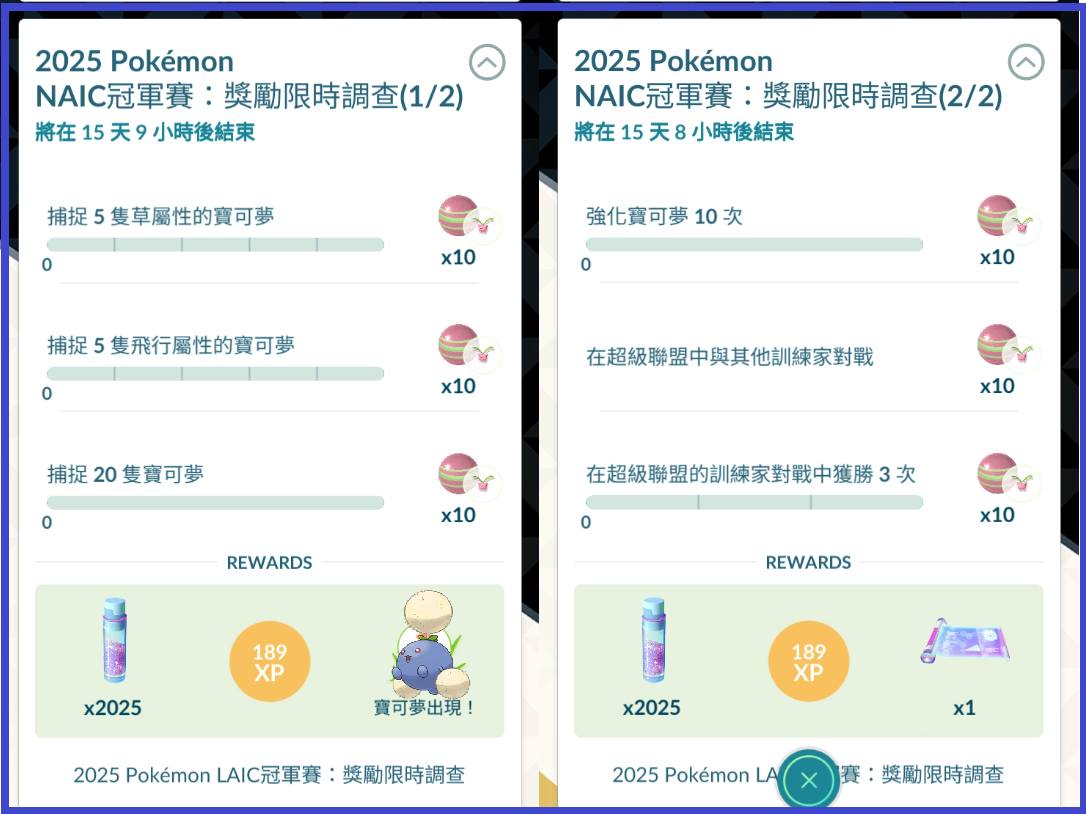 2025 Pokemon NAIC 冠軍賽獎勵限時調查任務(2關卡)