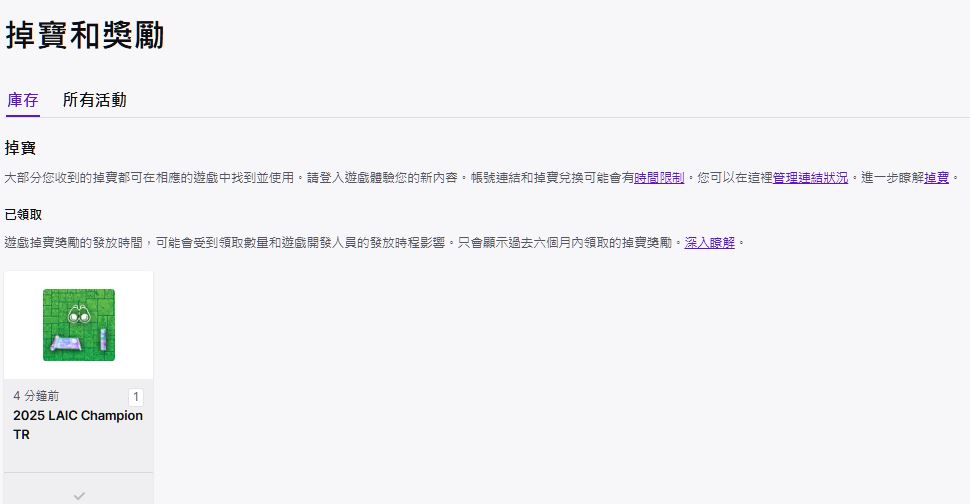 看完領>獎勵:https://www.twitch.tv/drops/inventory