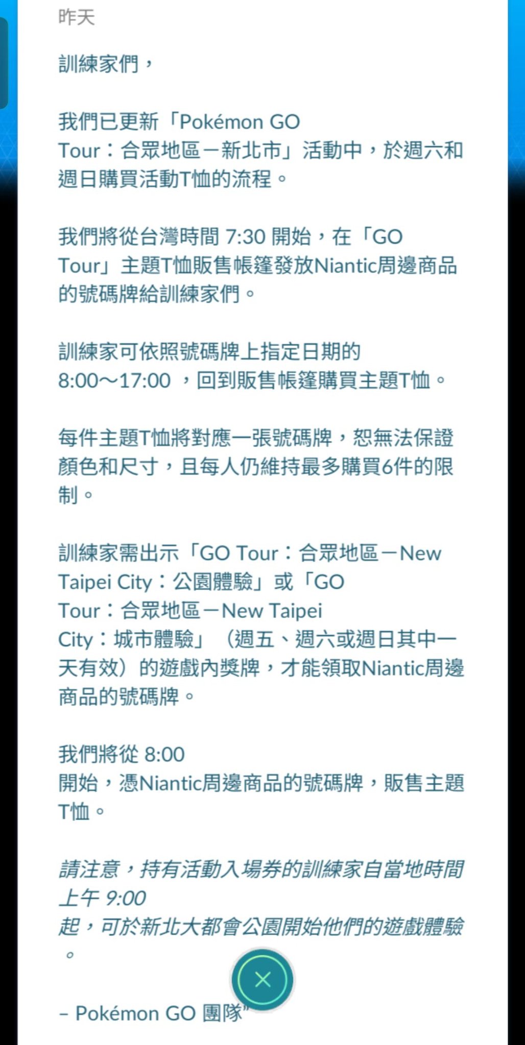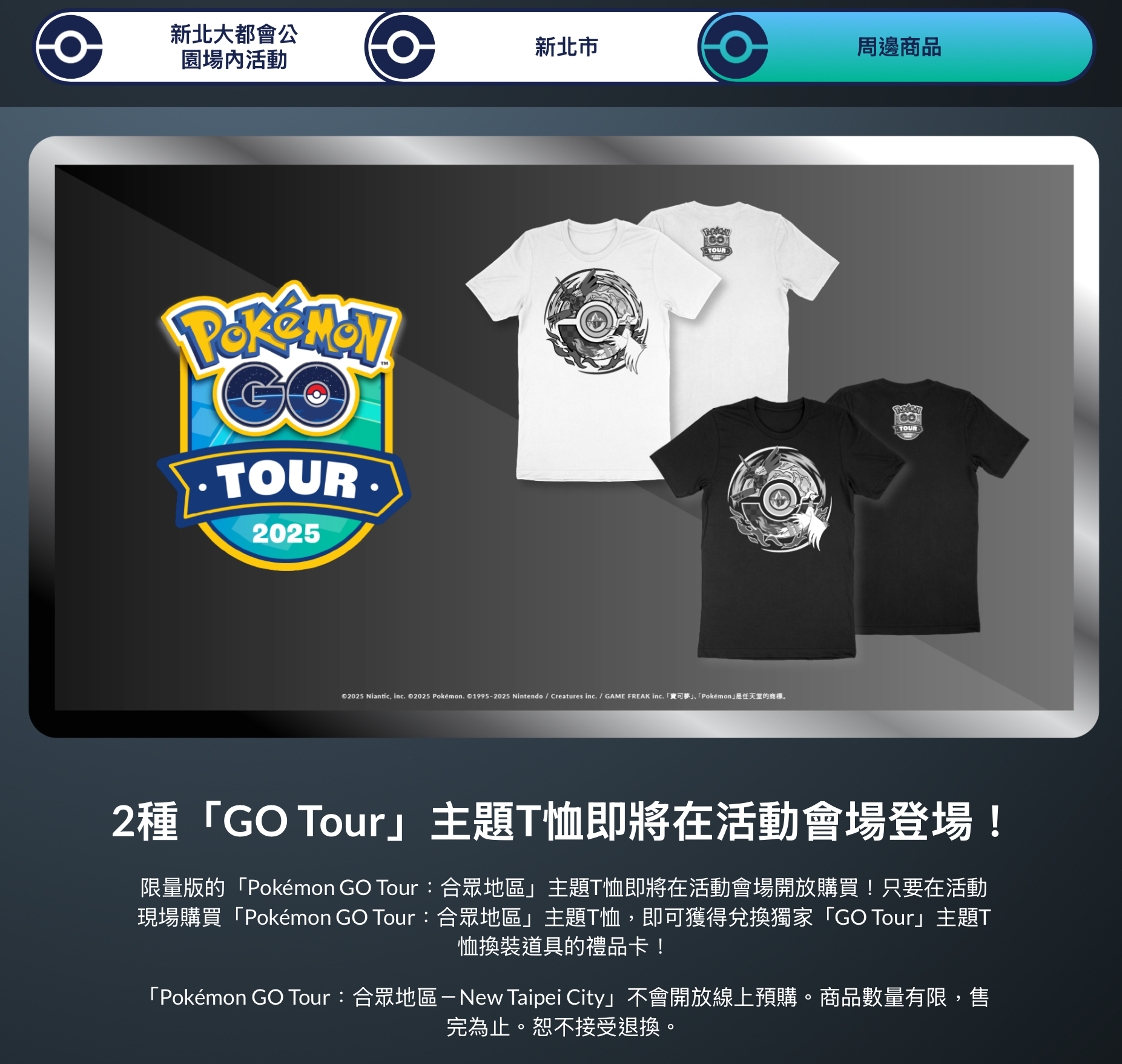 活動 T-shirt T恤 購買公告流程調整 2025 Pokémon GO Tour:合眾地區-New Taipei City 新北市