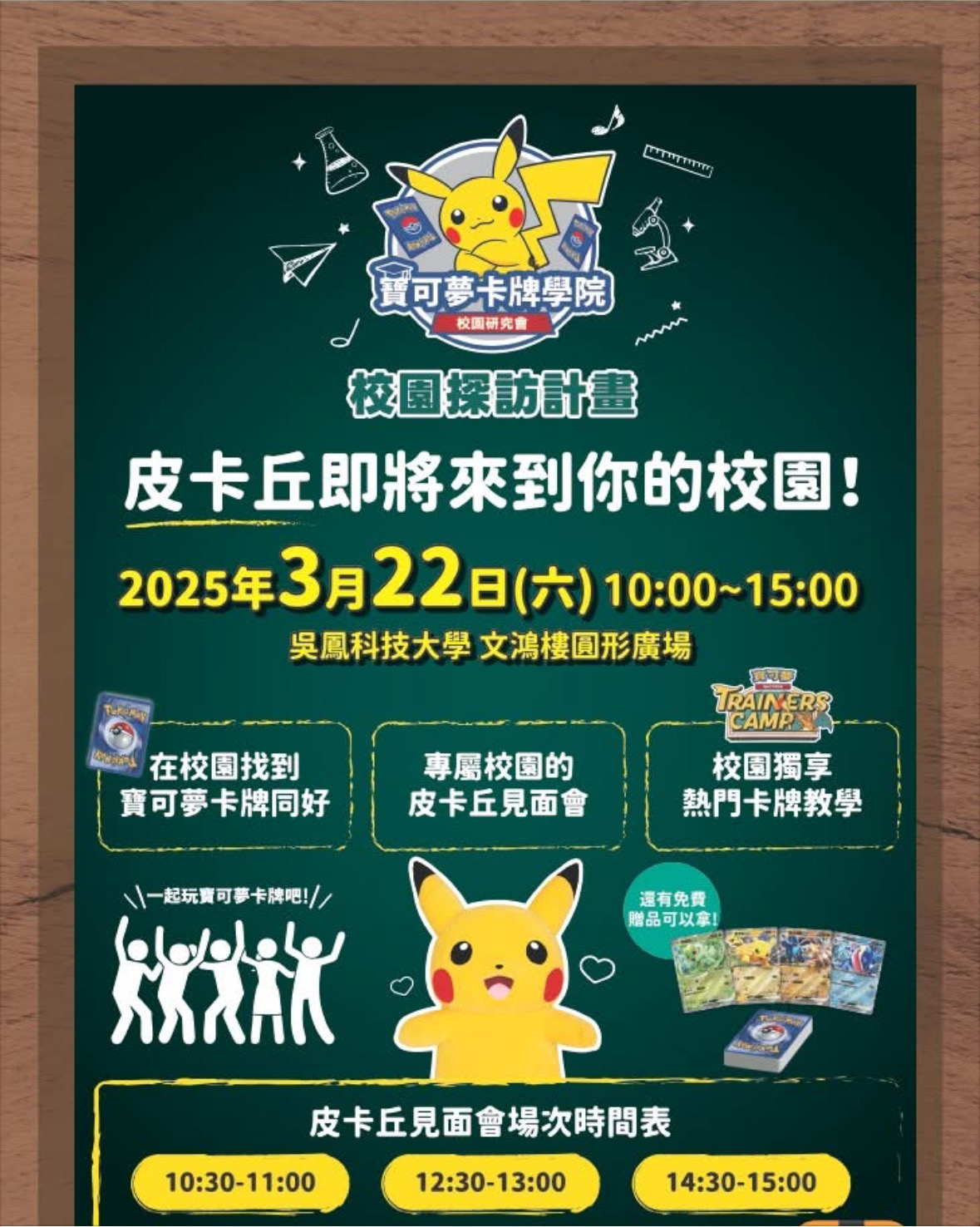 皮卡丘即將來到我們吳鳳科技大學啦!
