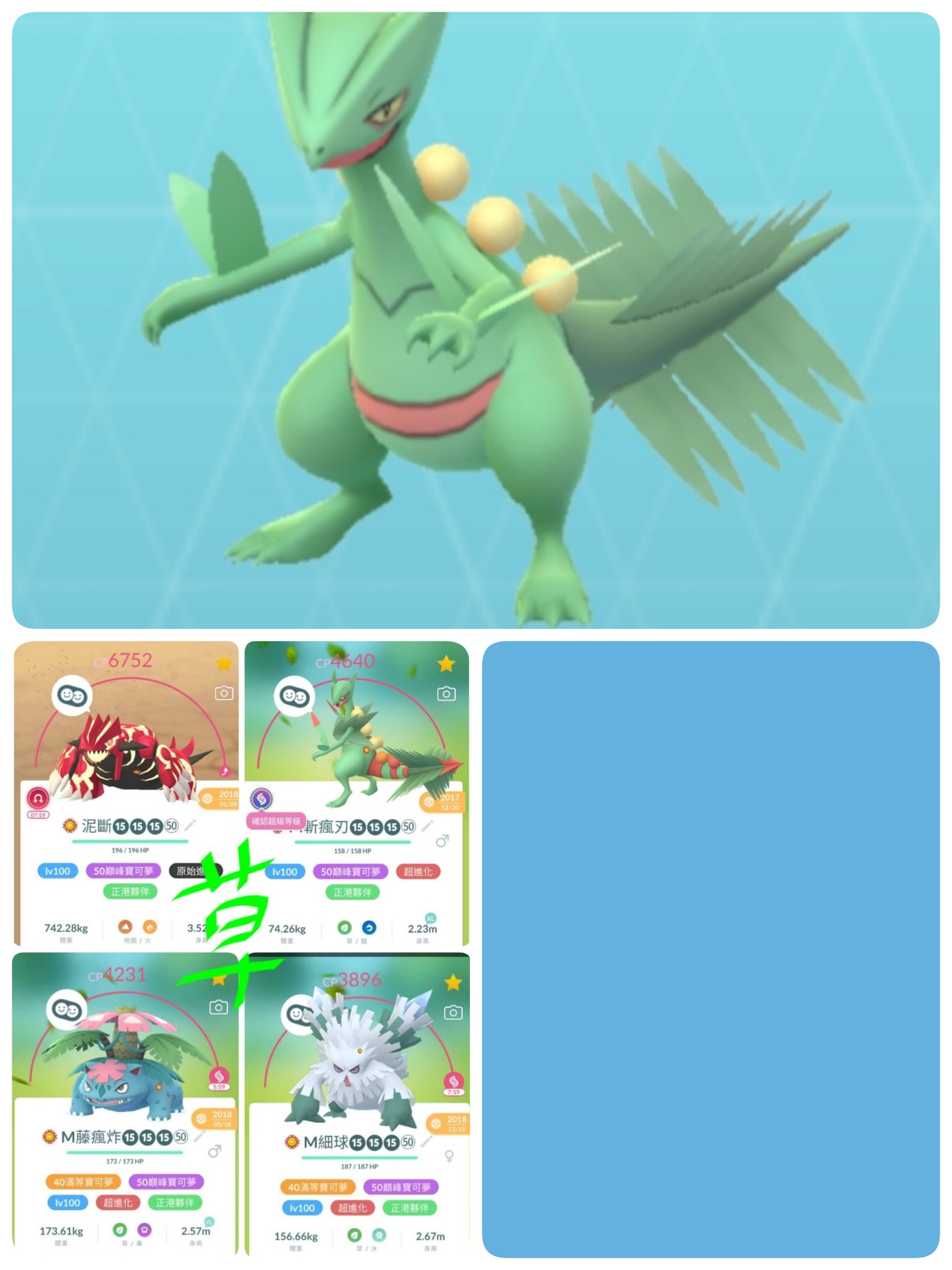 草的有4隻:秒蛙花,蜥蜴王,固拉多,暴雪王