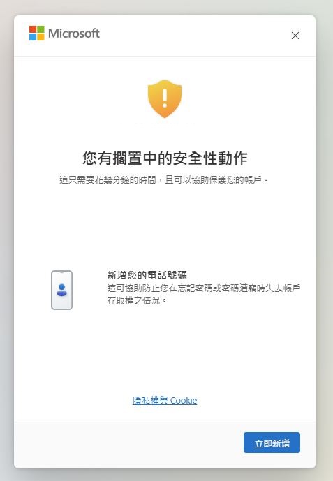 “登入你的手機號碼驗證” is interpreted as logging into the Microsoft account and then completing the necessary verification, which the original message specifies involves the phone number.