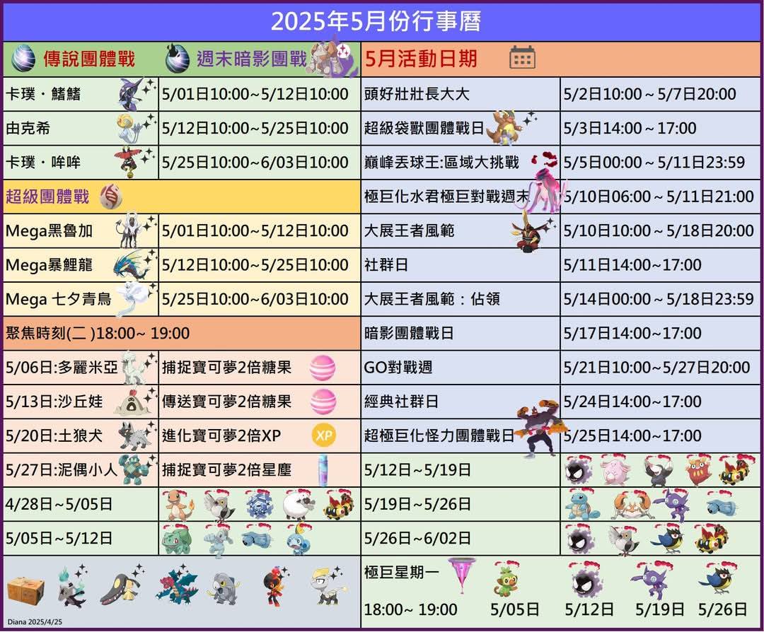 05/01 最新團體戰頭目表更新 寶可夢GO團體戰&極巨化&暗影 Pokemon GO 2025