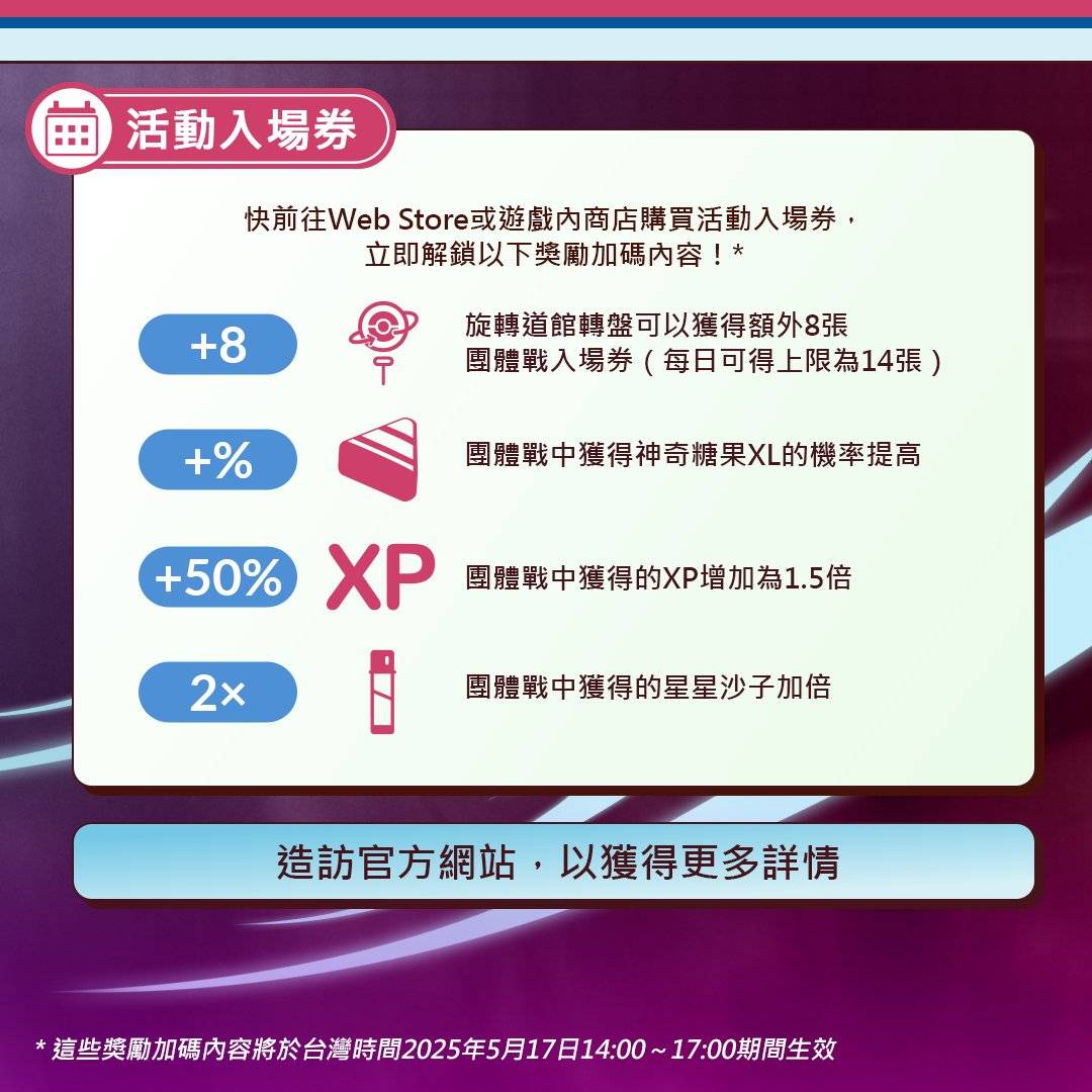 獎勵加碼內容將於台灣時間2025年5月17日14:00~17:00期間生效。