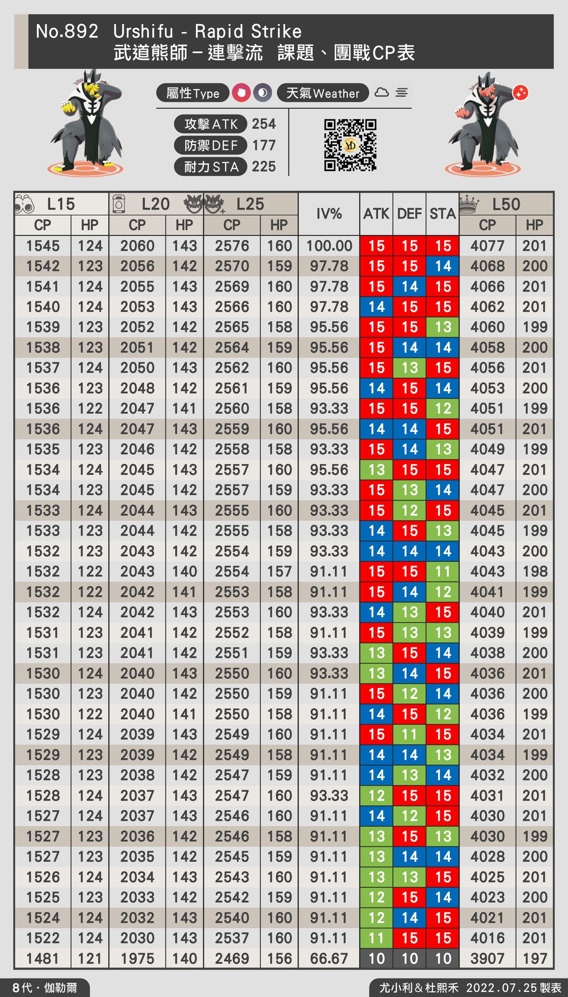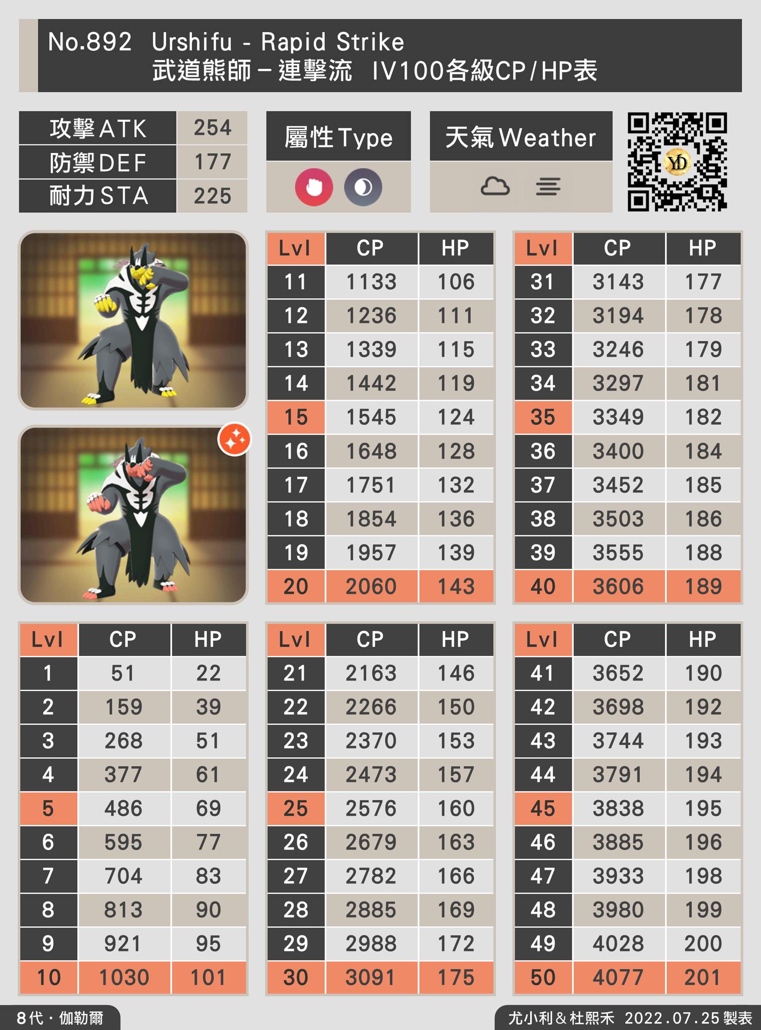 高級聯盟與超級聯盟: 若武道熊師(尤其是一擊流,因其有明確排名)要在這兩個CP上限的聯盟中使用,則通常追求低攻擊、高防禦、高HP的IV組合,以在CP限制下最大化其整體坦度與綜合能力。具體的最佳IV組合需參考如PvPoke或专门的IV計算工具。