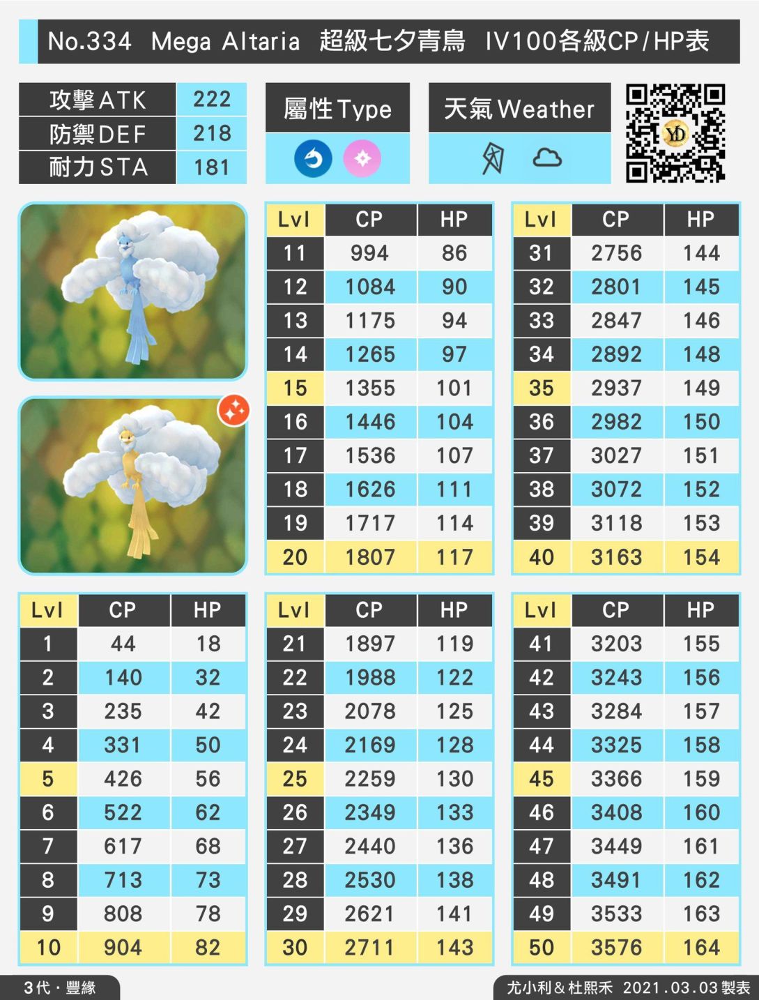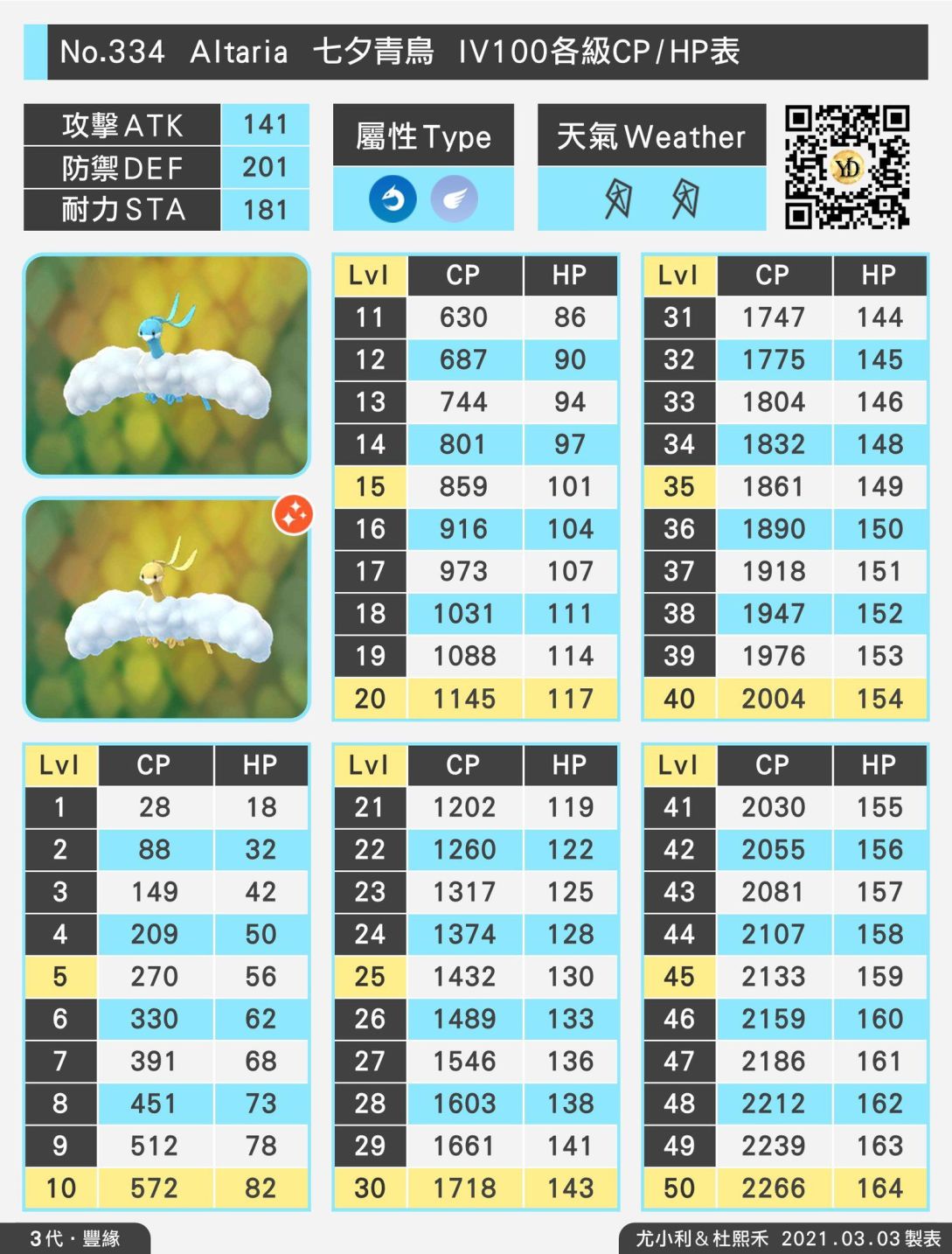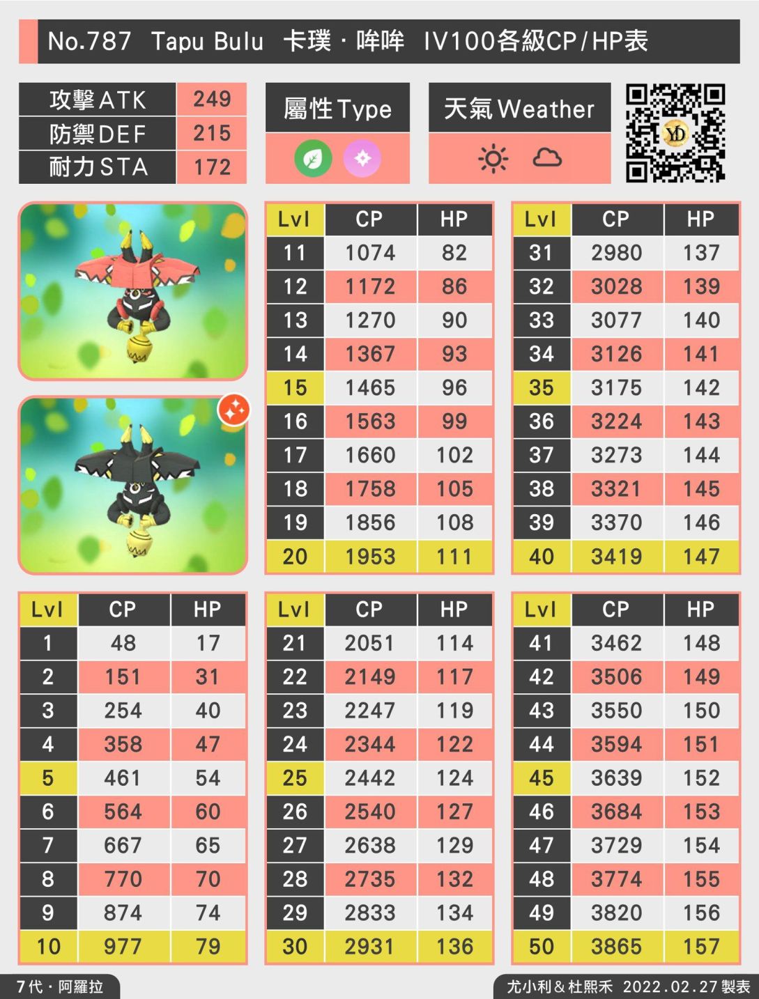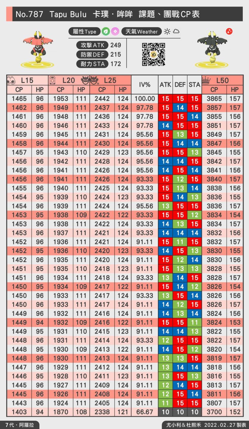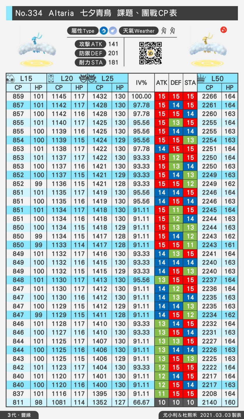 等級 50 最佳IV組合(Rank 1) Lvl 50 15/15/15 CP 2266