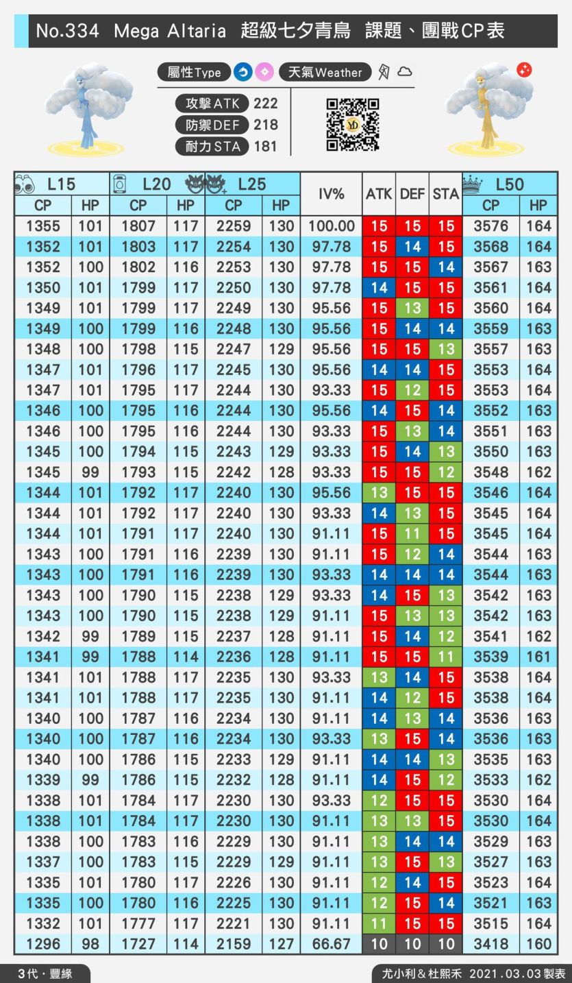 等級50 最佳IV組合(Rank 1) Lvl 50 15/15/15 CP 3865