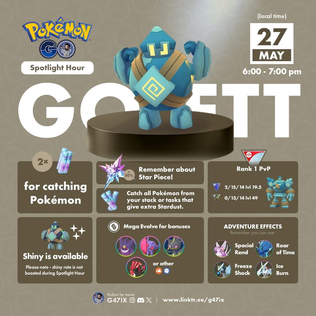 05/27 泥偶小人 聚焦時刻 Pokemon GO 2025 發佈日期: 2025-05-272025-05-27 作者: tomchun ※本篇內文資訊參考如下※ - - ※更新文章日期: 2025-05-27 05/27 泥偶小人 聚焦時刻 Pokemon GO 2025 – – ●05/27 泥偶小人 聚焦時刻 (地面、幽靈) 捕捉寶可夢2倍星塵 – 泥偶巨人 配招技能推薦 擲泥, 暗影拳, 爆裂拳 – 泥偶巨人 對戰聯盟 40/50 2854 3226 CP 2/15/14 1499 CP 0/13/14 2500 CP – – – – –
